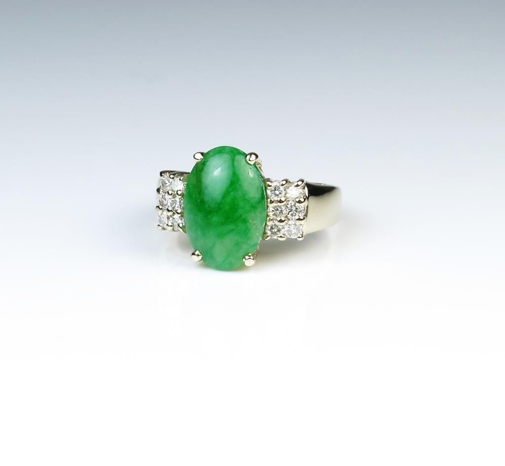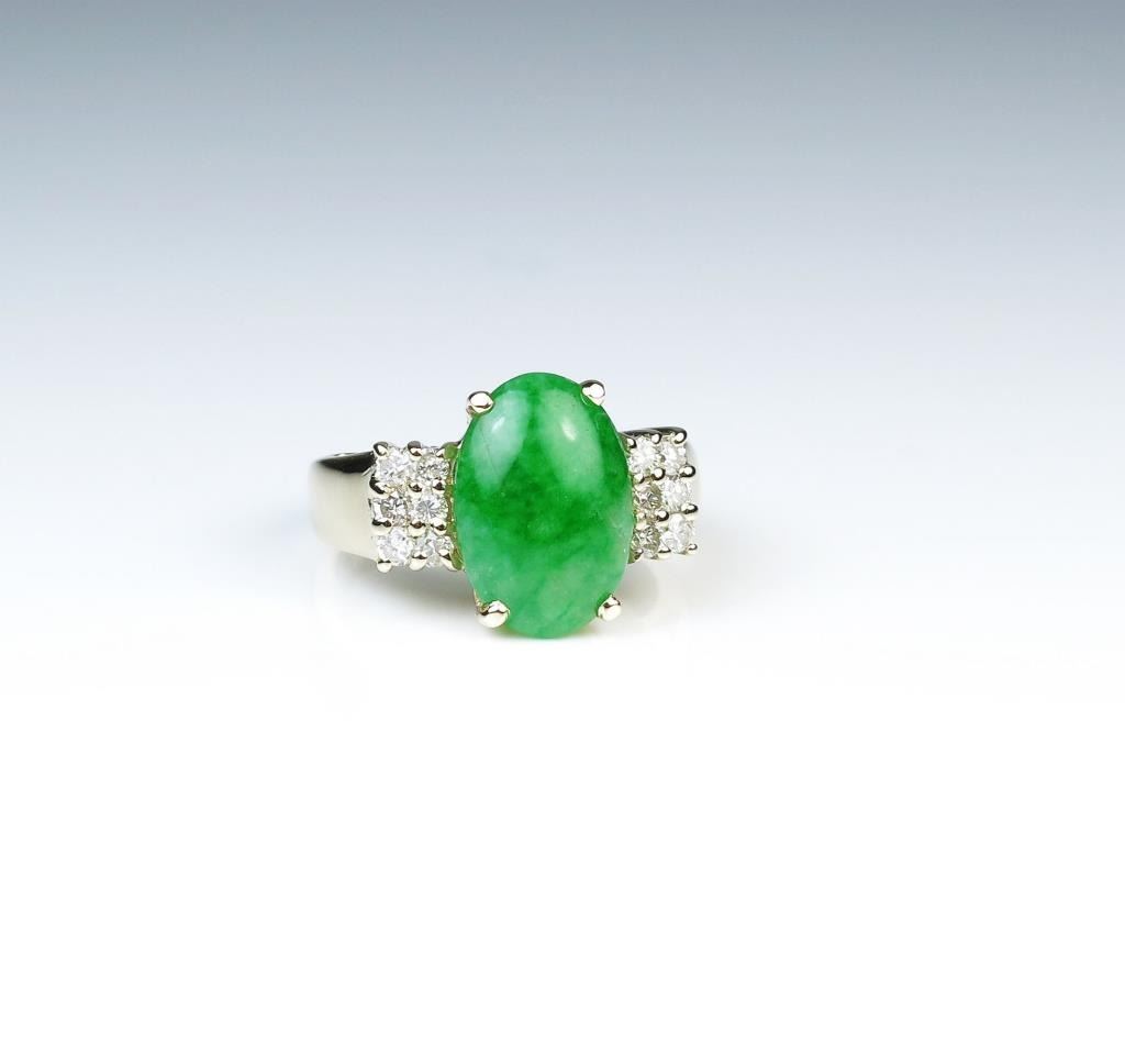 Lot 935b 18CAI-33 GREEN JADE & DIAMOND RING