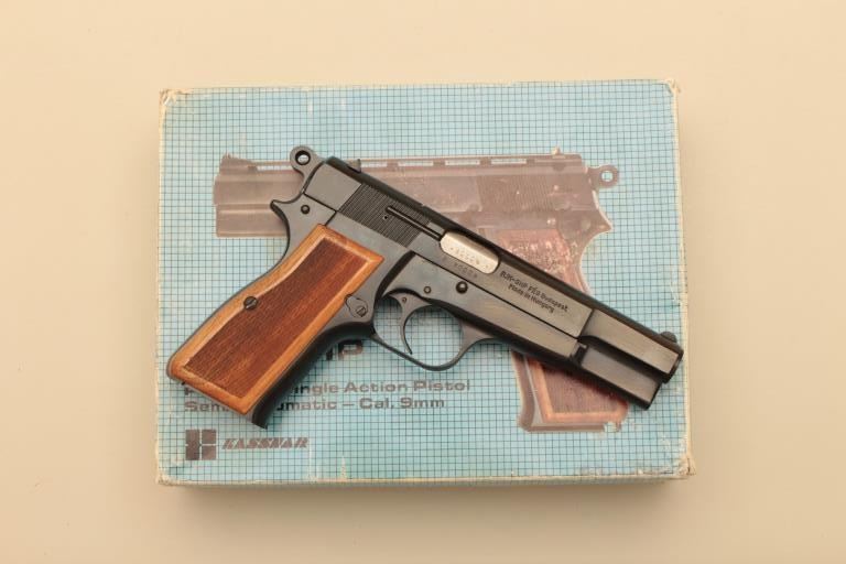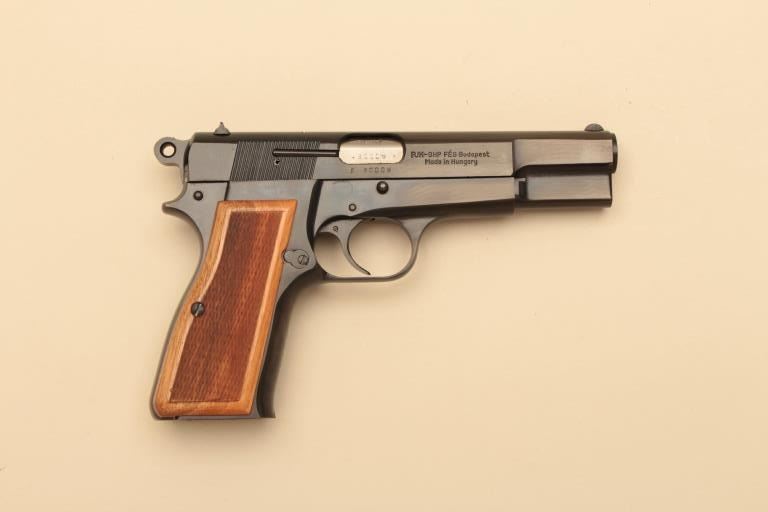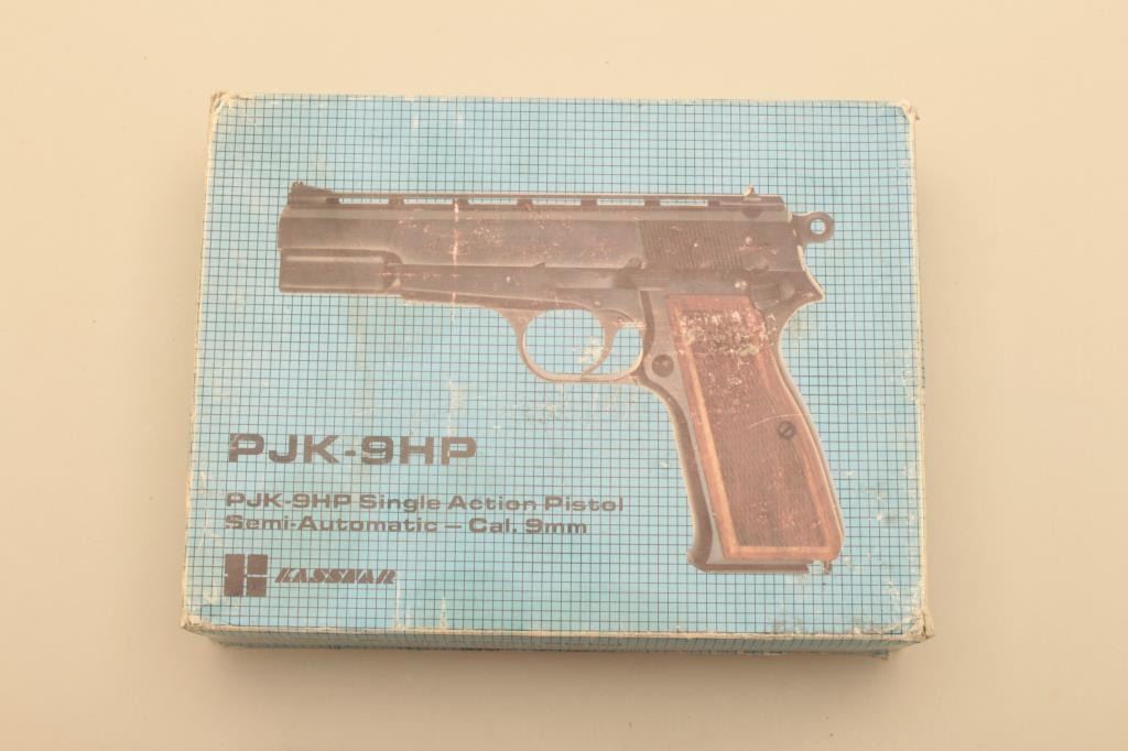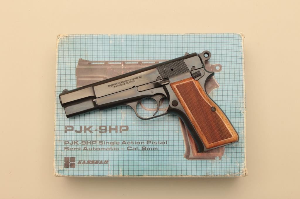 FEG Model PJK-9HP, #F30008, 9mm, 4 3/4" barrel, blued finish, checkered wood grips. Pistol is in as new condition, mint bore, crisp action, excellent grips. In the original box with manual with 2 hi-cap mags(not transferrable to CA or other prohibited states or areas). (Modern/PPT) Est. $250-500