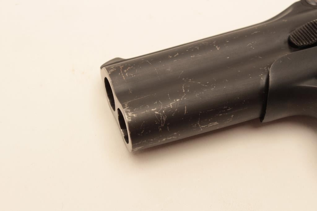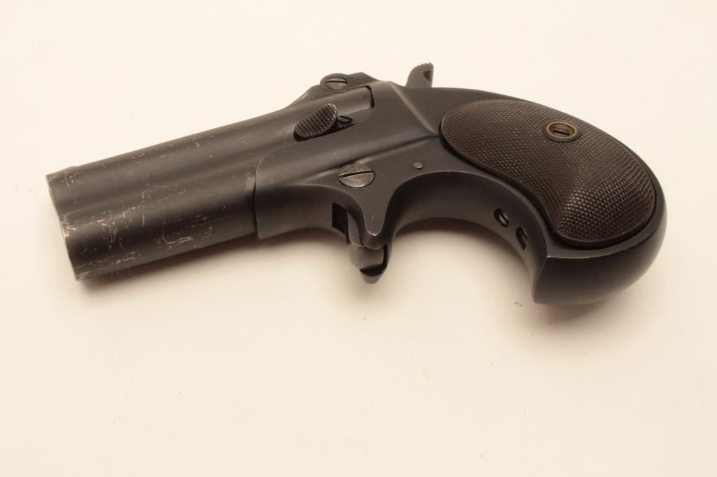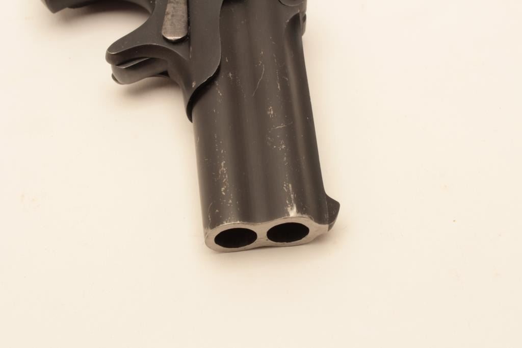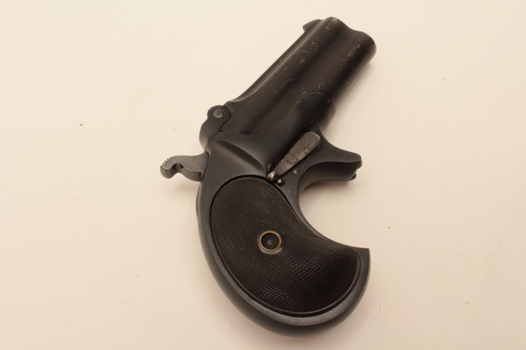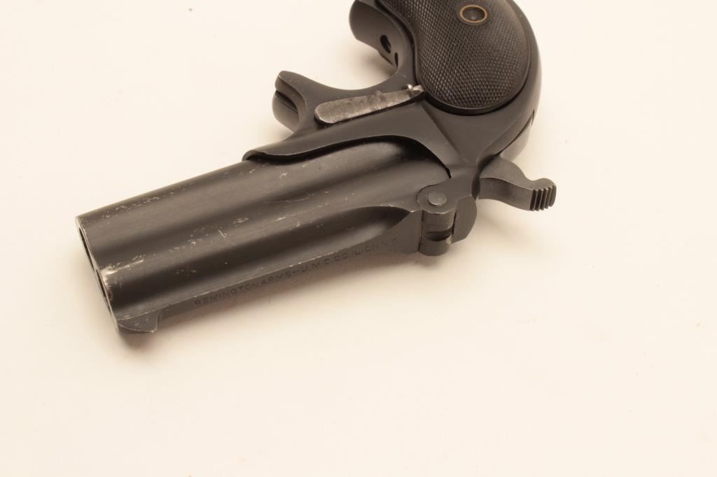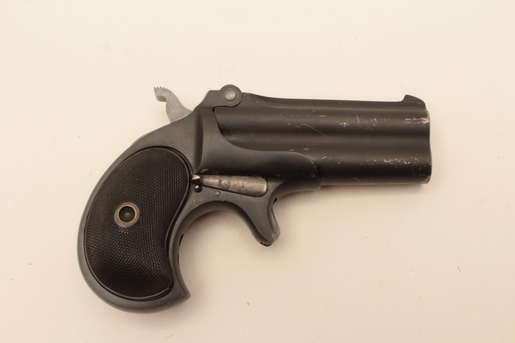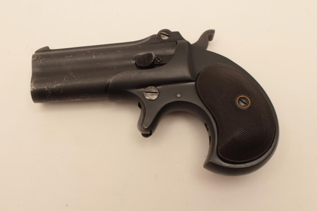 Remington Double Derringer in .41 rim fire, last variation with monoblock and rare no rib, S/N L75998 made 1935. 95%-98% dark late blue finish with black hard rubber grips. Minor scratches from storage. Some minor use. The end of production. The collection of Doug Drummond with a copy of his book. (C&R/PPT) Est.: $1250-2500
