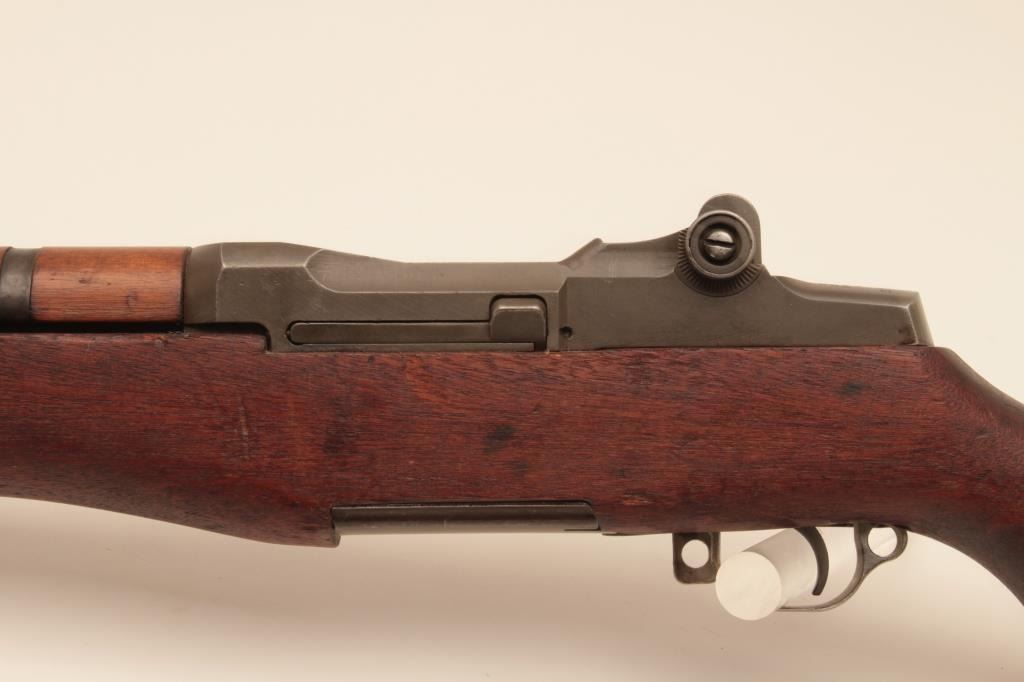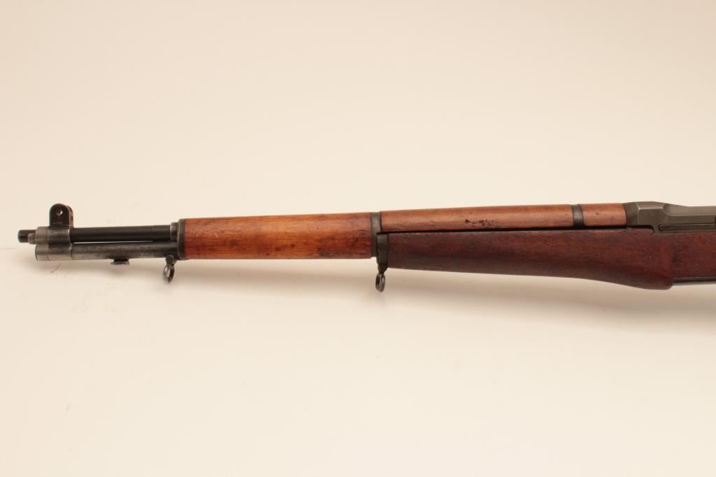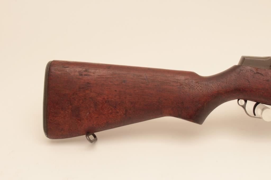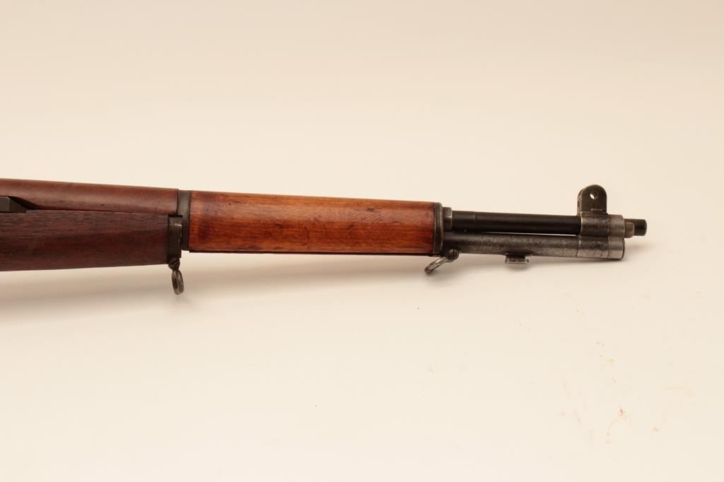 Springfield M1 Garand in .30-06 caliber, S/N 3159053. Arsenal upgraded and rebuilt in Vietnam era with barrel dated 6-68 and Springfield marked. Arsenal replaced stock with no stock markings. Good overall with noimport markings. Good bore. Many storage marks in wood. Most likely D.C.M. released. (C&R) Est.: $800-$1600
