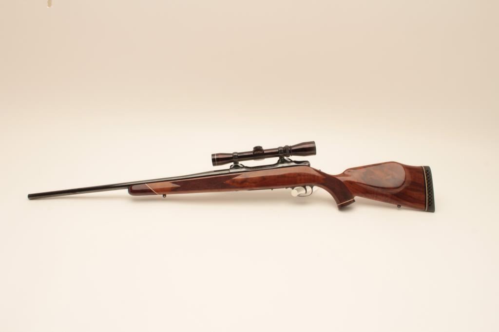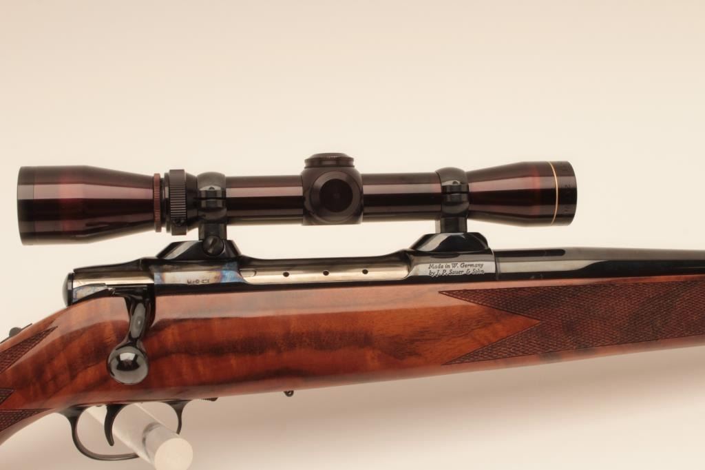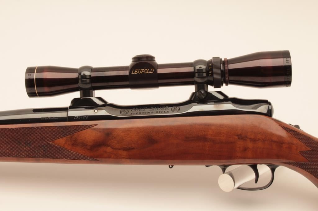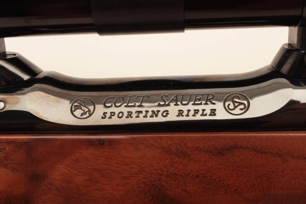 Colt Sauer Bolt Action Sporting rifle in .300 Win Mag caliber with 24” barrel, Leupold 2x7 Power scope on factory mounts, 3 mags, sling, and Browning luggage case, S/N CR24675. Pachmayr rubber pad added. Thecondition is fine to near excellent with minor use. 96%-98% overall. (Modern) Est.: $1250-$2500