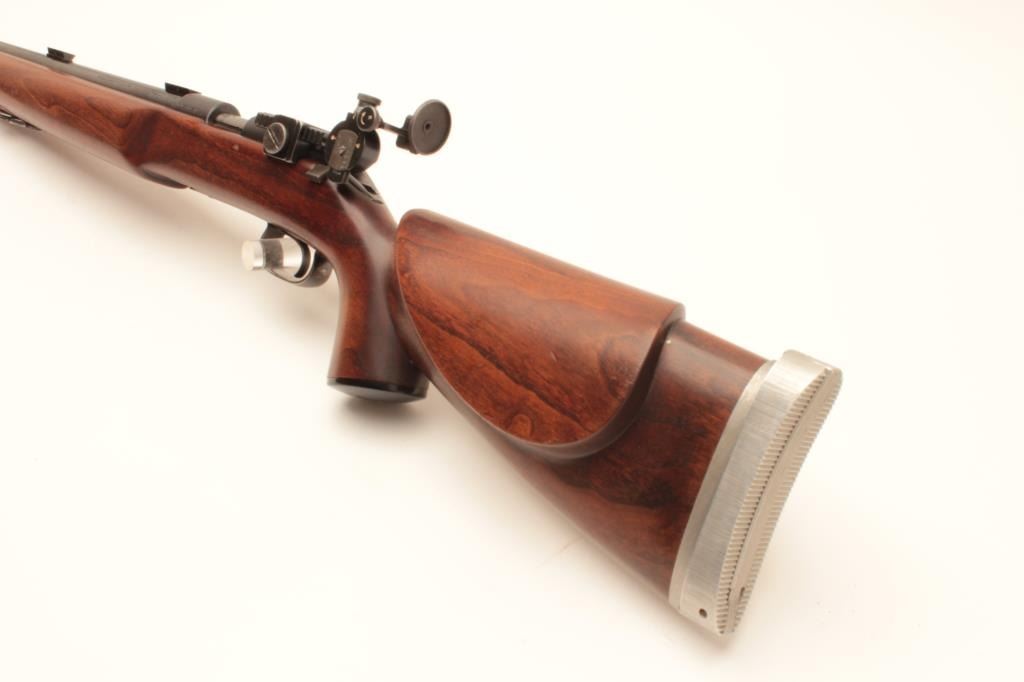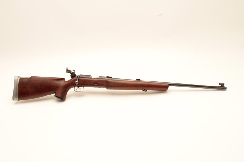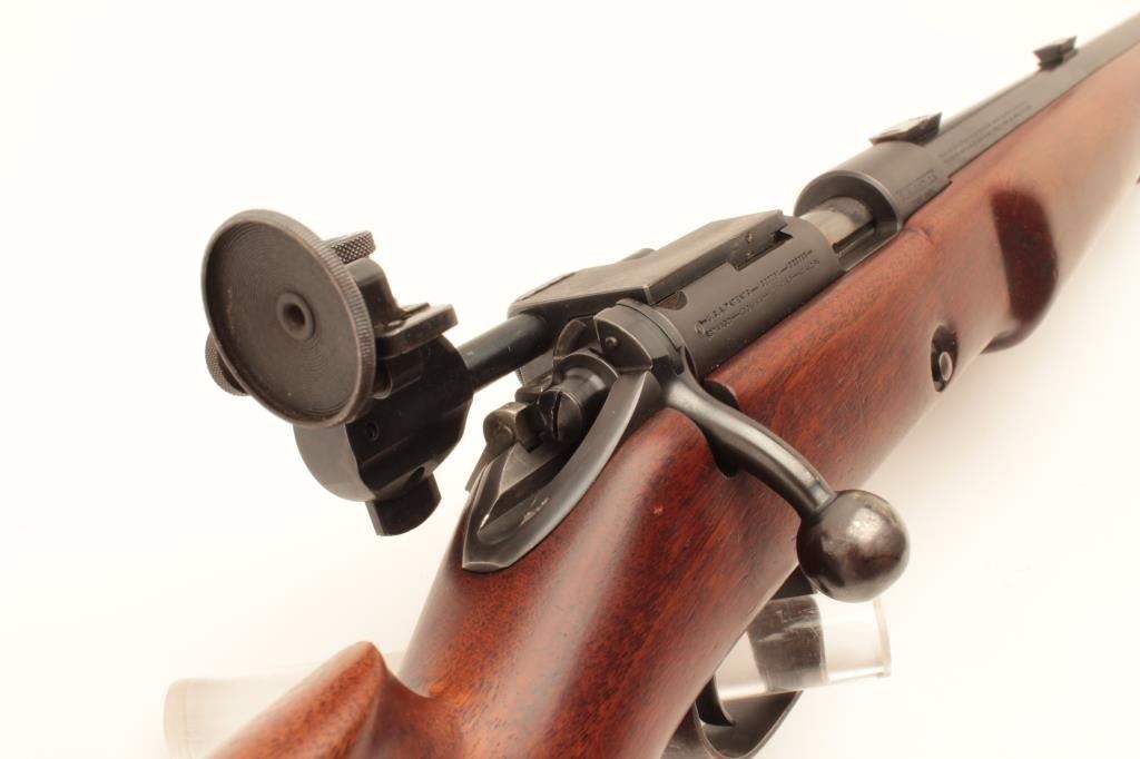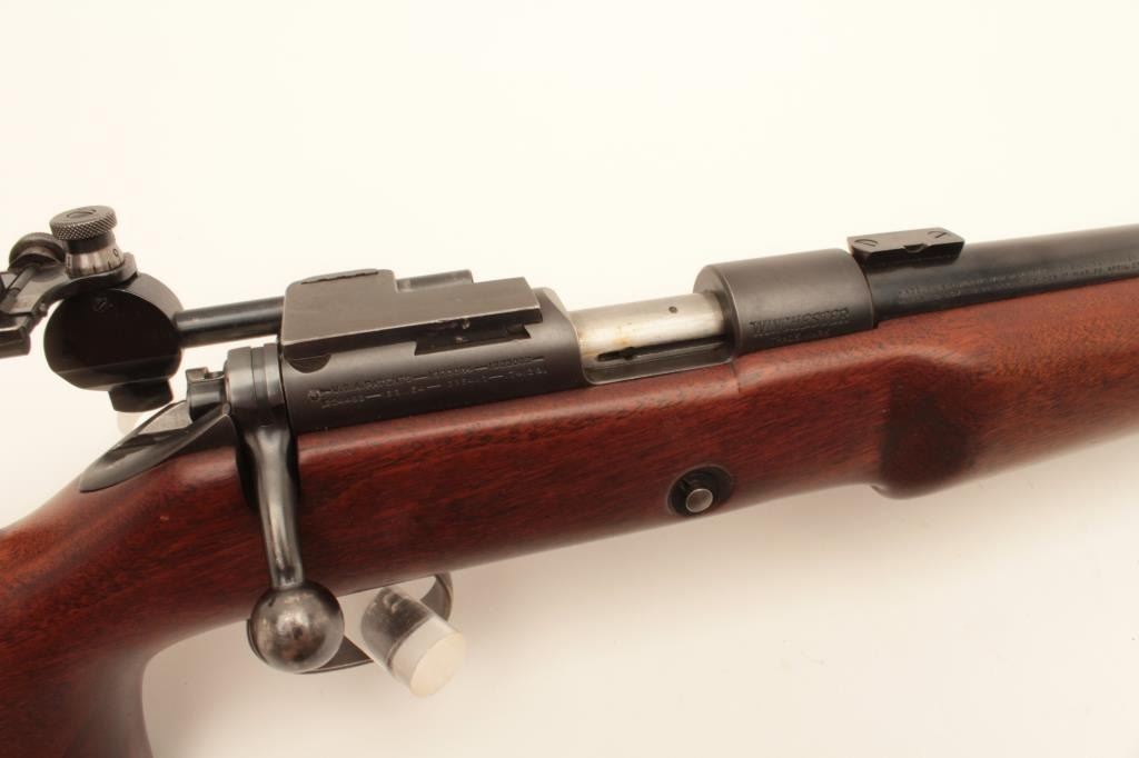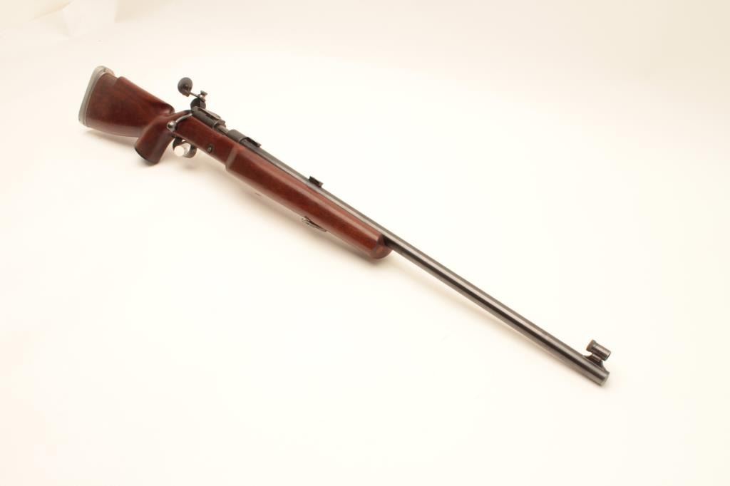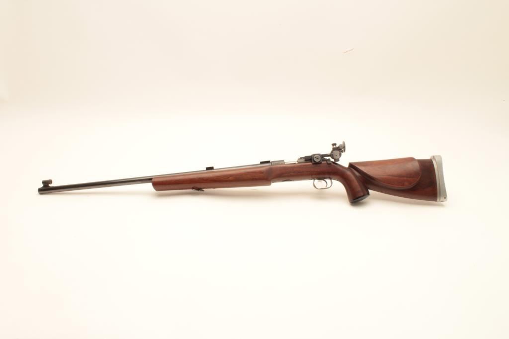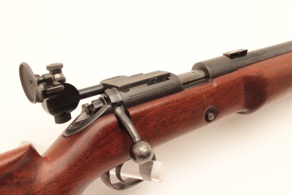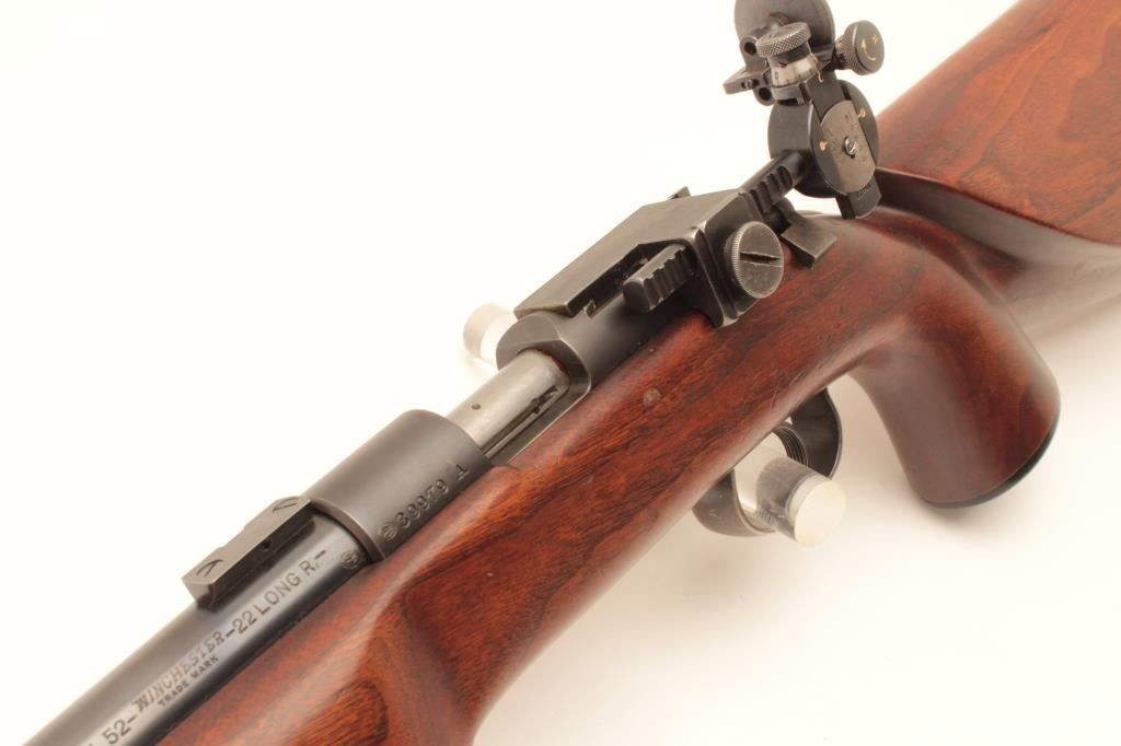 Winchester Model 52 bolt action Target rifle, .22LR caliber, 28” barrel, blued finish, adjustable target stock and target sights (Lyman rear and hooded front), S/N 39979A, in overall very good condition with a very good bore, crisp action, markings and very good wood stock. (C&R). Est.: $700-$1,400.