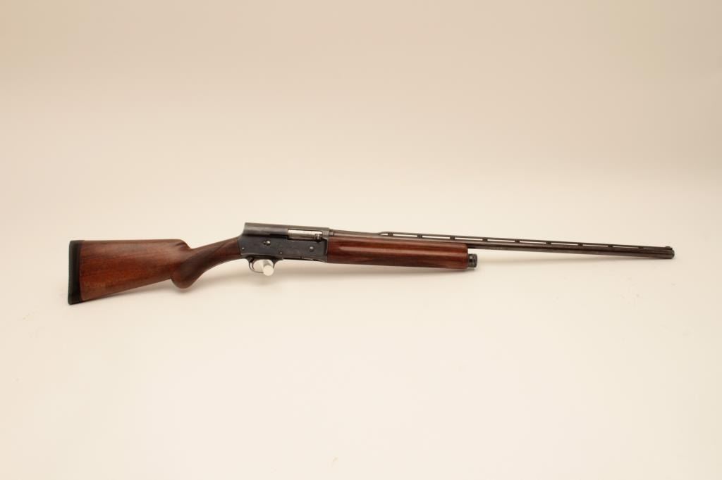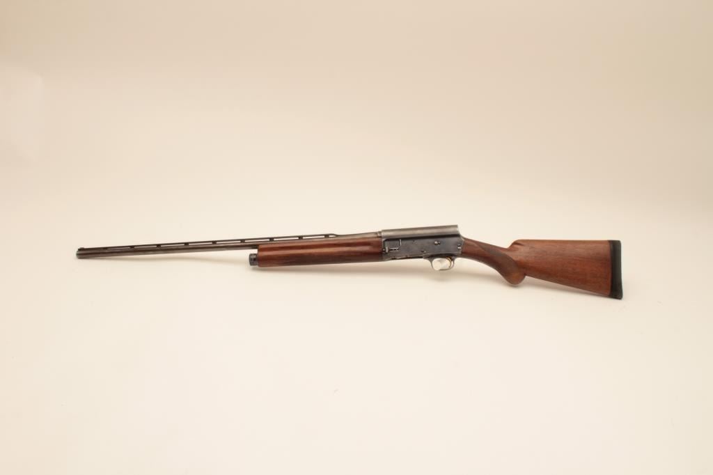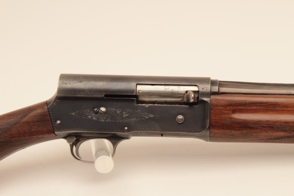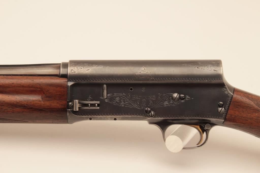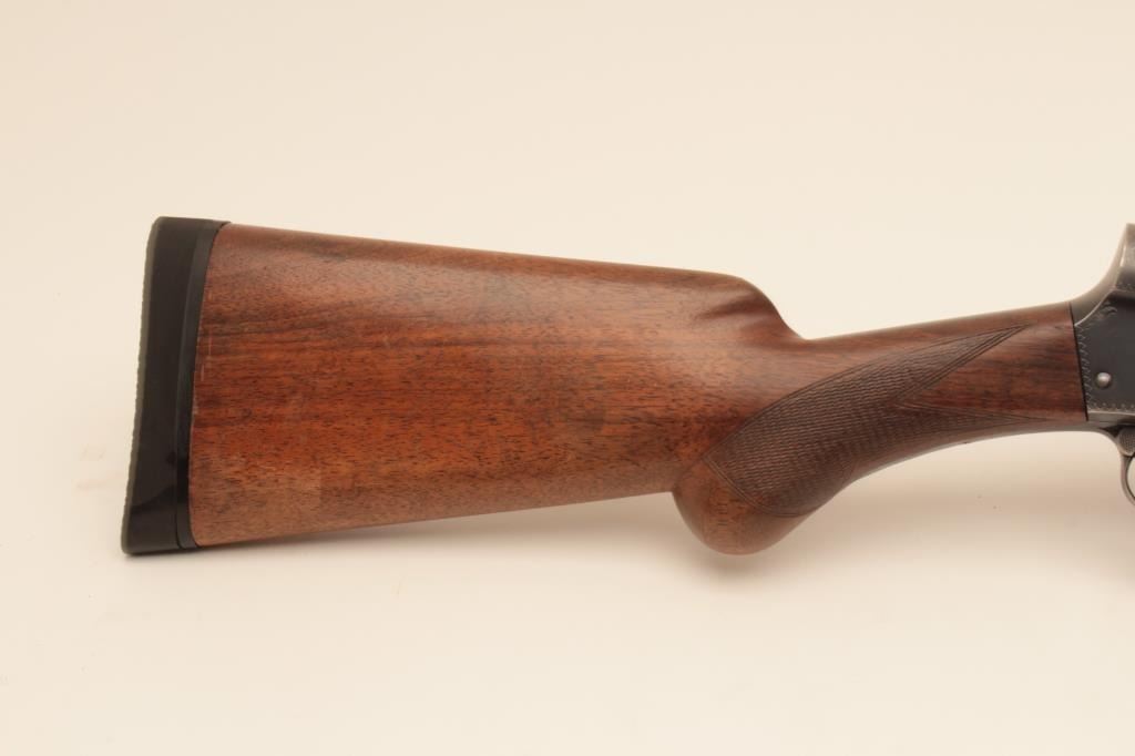 Belgium Browning 20GA Auto 5 with custom vent rib on 28” barrel full choked. Long pistol grip with round knob, S/N 10043. 30%-50% thinning blue. Fair to good wood with even use and some wear. 14” to the end of 1” added pad. Mechanically sound with good bore. (Modern) Est.: $400-$800