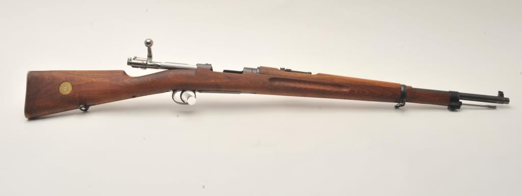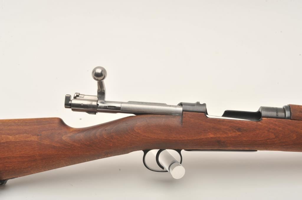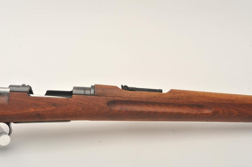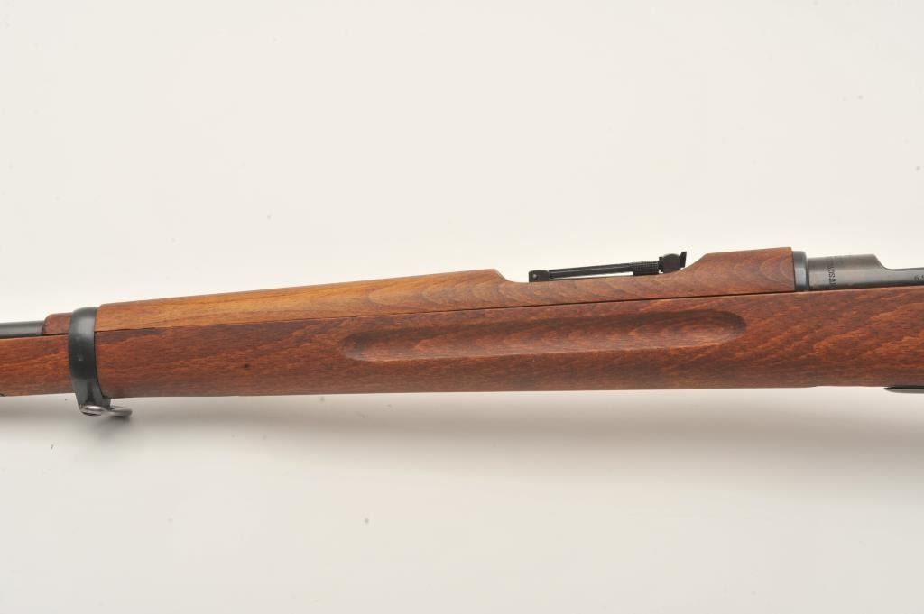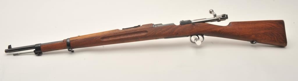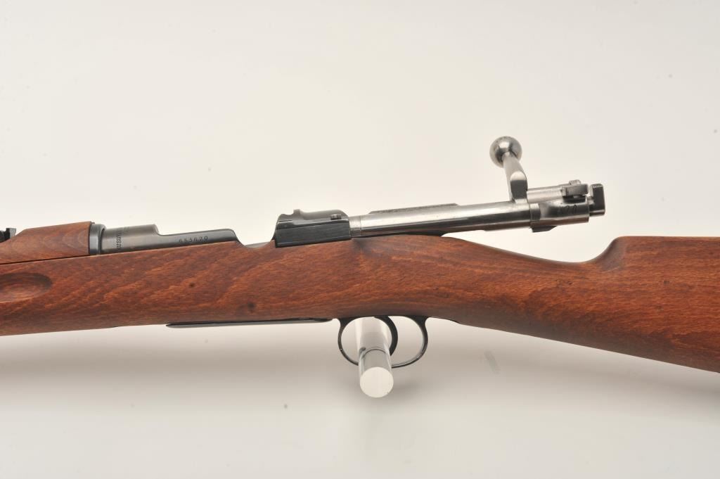 Husqvarna Model 1938 Swedish Mauser bolt action short rifle, 6.5 x 55mm caliber, 24” barrel, blued finish, wood stock, S/N 653620 (matching bolt); overall very good to fine condition with near fine bore, crisp action,sharp markings, import marked, fine wood stock. (C&R). Est.: $200-$400.