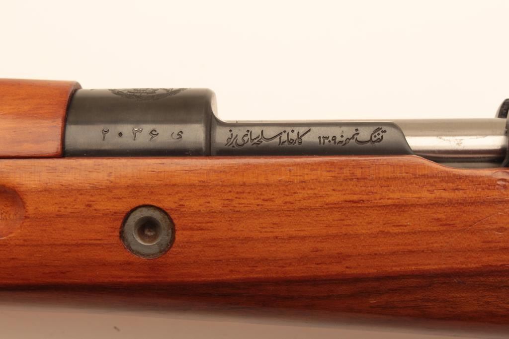 Bruno Model 1898/29 Persian Mauser bolt action rifle, 8 x 57mm caliber, 29” barrel, blued finish, import marked wood stock, S/N Y2036 (markings in Farsi); overall very good to near fine condition with near fine bore,crisp action, sharp markings and very good wood stock. (C&R). Est.: $200-$400.