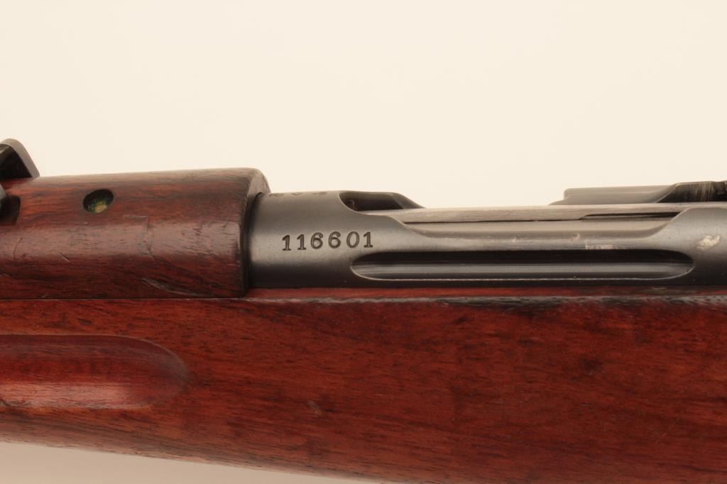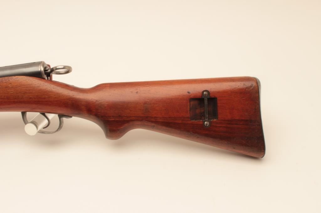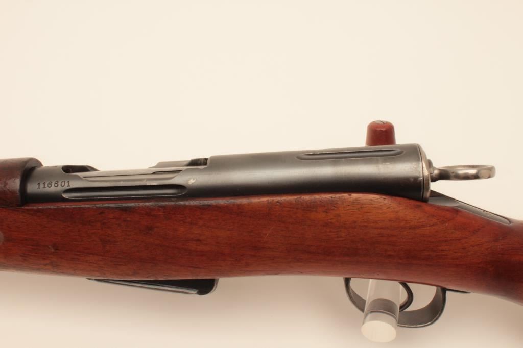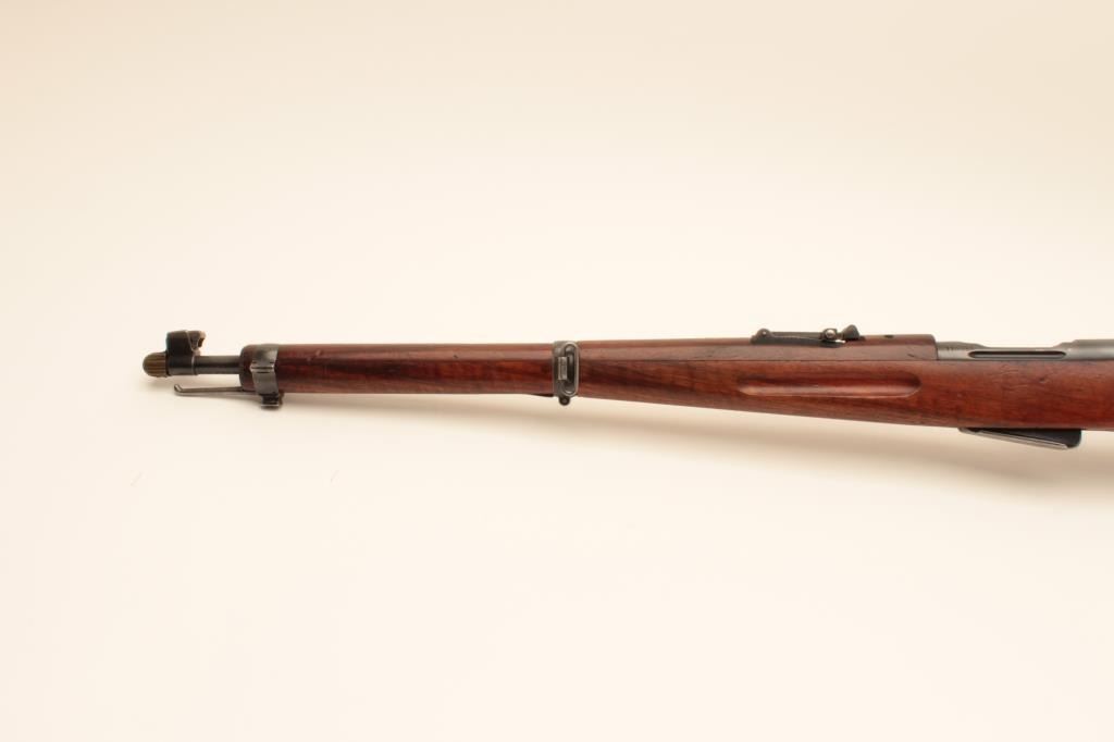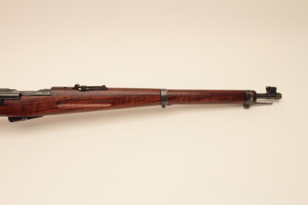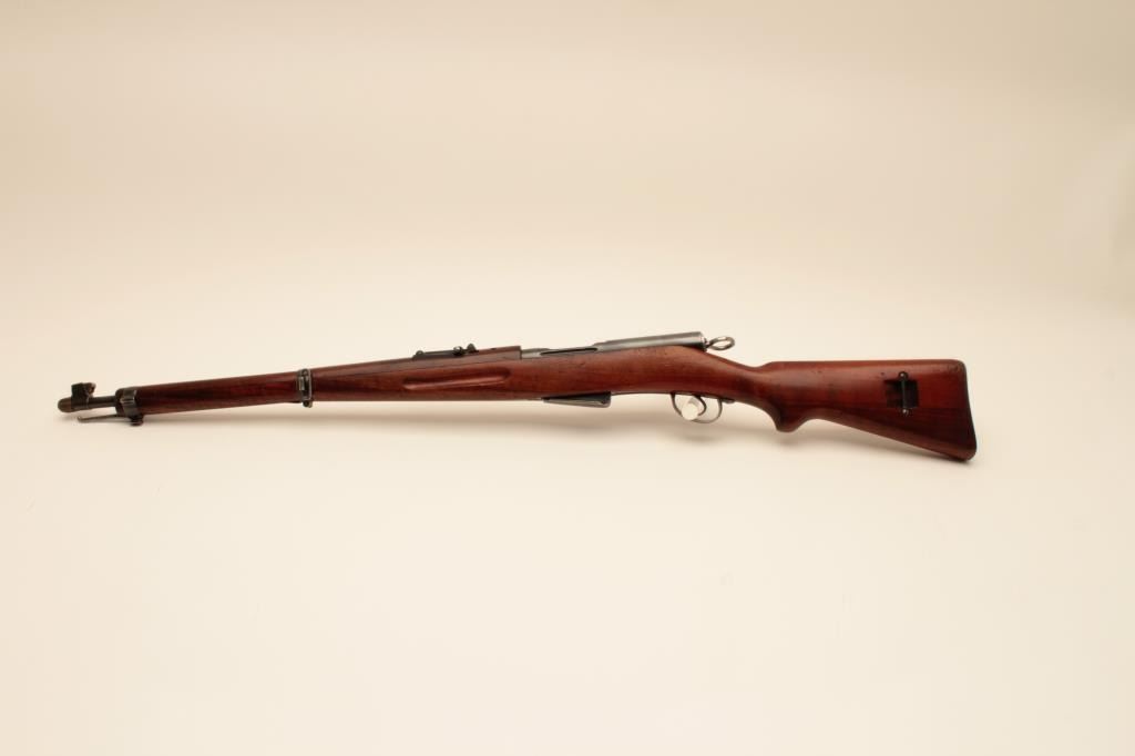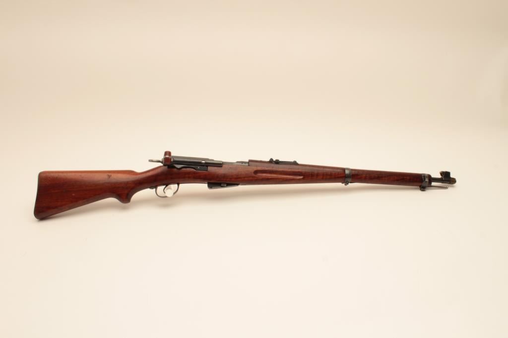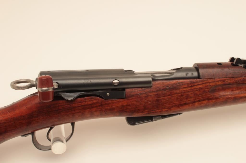 Waffenfabrik Bern K1911 straight pull bolt action carbine, 7.5 x 55mm Swiss (GP11) caliber, 23” barrel, blued finish, finely grained wood stock, import marked, S/N 116601, matching visible numbers except rearsight; overall very good to near fine condition with near fine bore, crisp action and markings, brass muzzle cover, overall very good wood stock with scattered old mars and scratches primarily to butt stock arealikely from storage. (C&R). Est.: $150-$300.