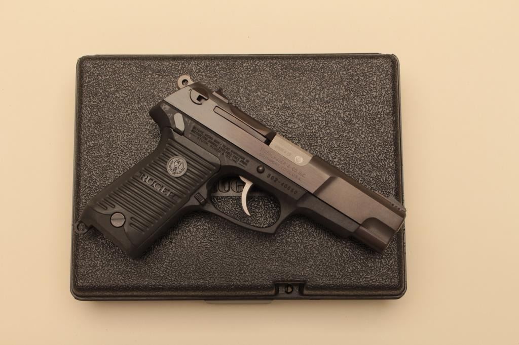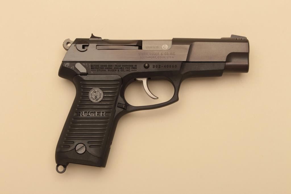 Ruger P85 semi automatic pistol, #302-40660, 9mm, 4 3/8" barrel, blued finish, plastic logo grips. Pistol is in excellent condition, with minor handling marks. Includes original hard case, instructions and 2 hi-cap mags (not transferrable to CA or other prohibited states or areas). (Modern/PPT) Est. $275-550