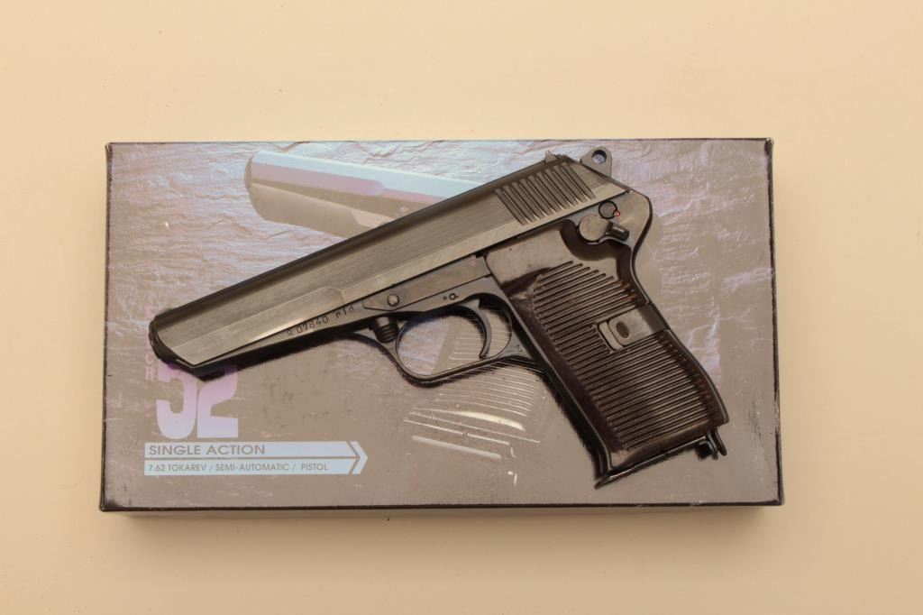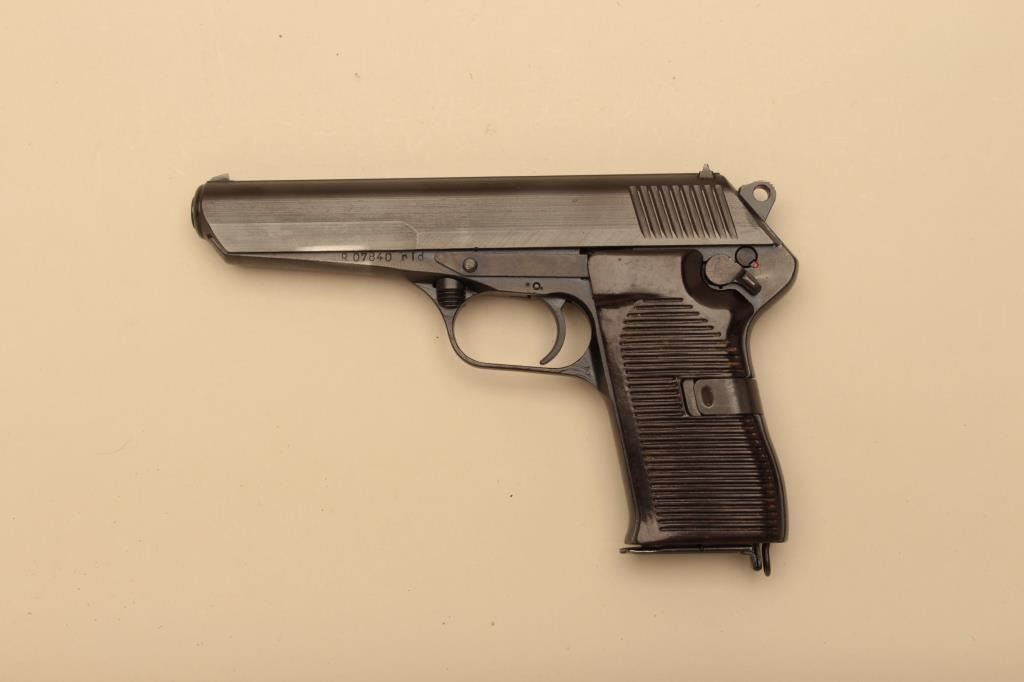 CZ Model 52 semi automatic pistol, #R07840, 9mm cal., 4.7" barrel, blued finish, bakelite grips. Pistol is in fine condition overall, retaining the majority of it's reblued finish. Bore is very good, action is good.One mag and box included. (C&R/PPT) Est. $200-400