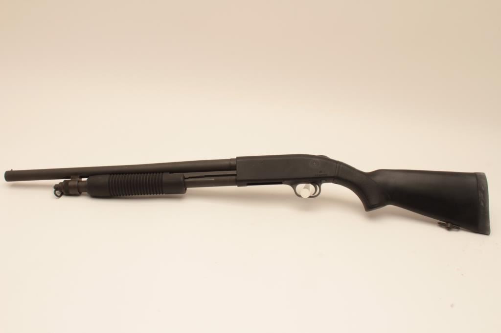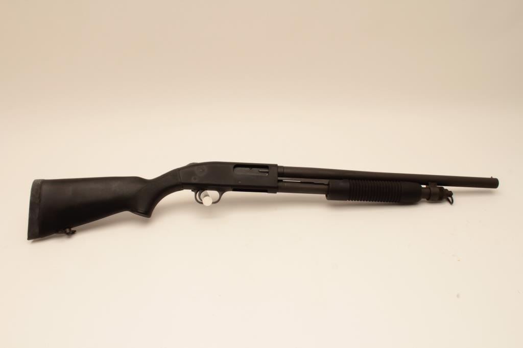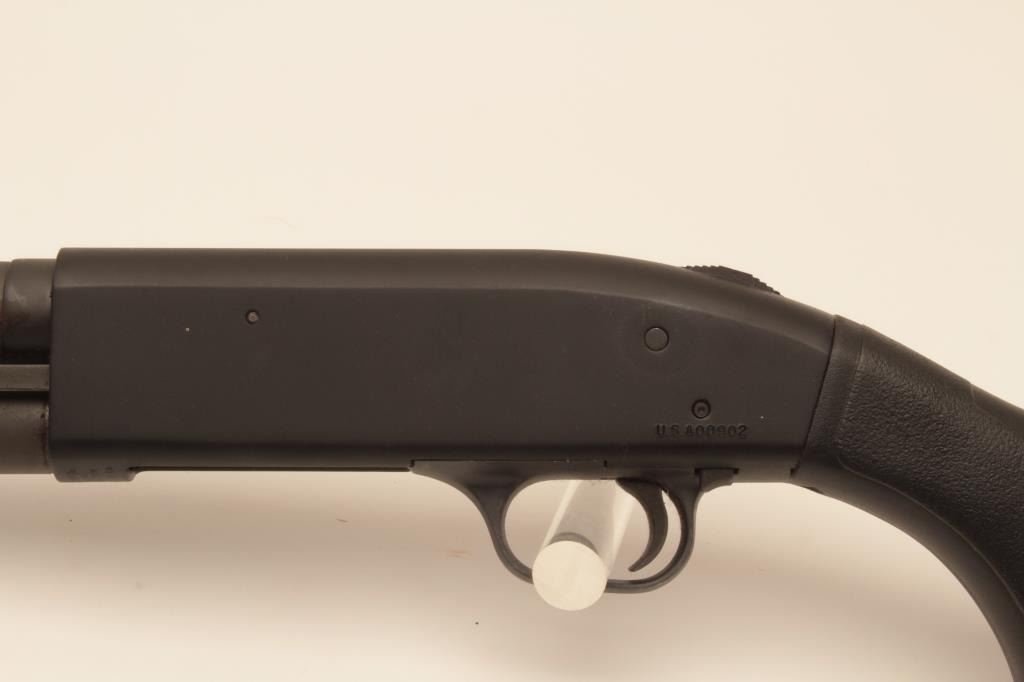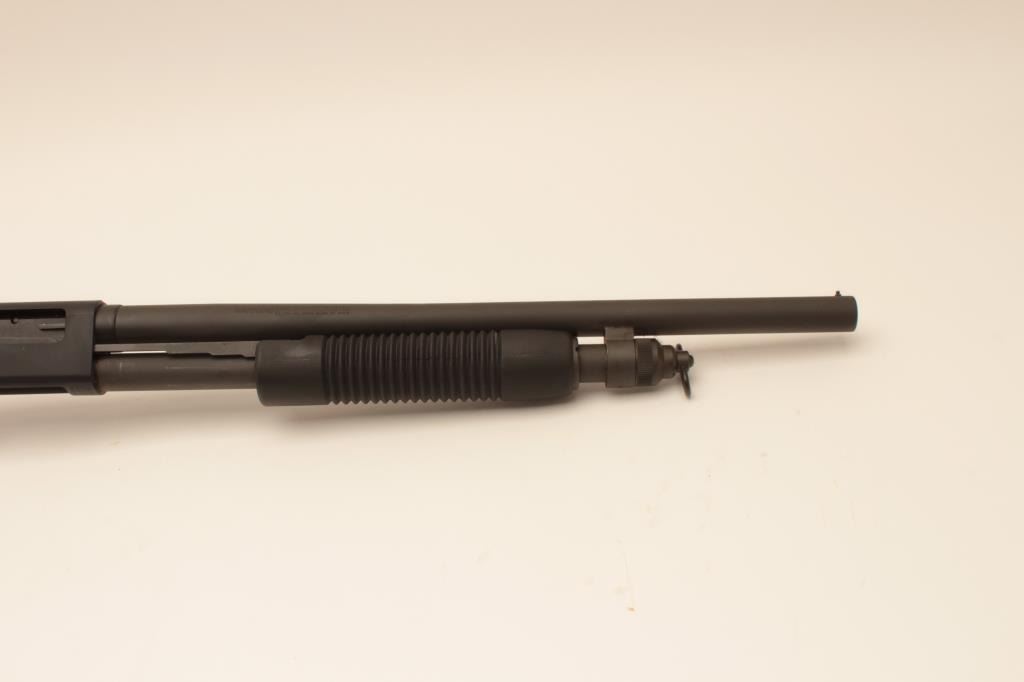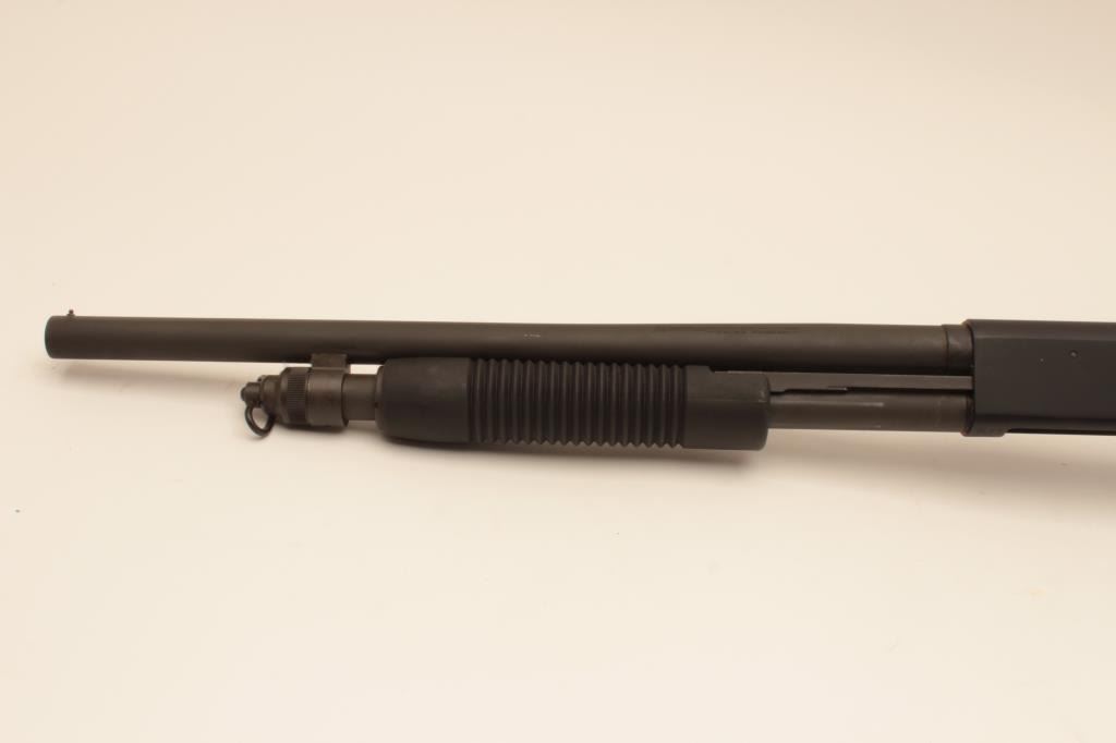 Mossberg 500 MILS Model 12GA riot length shotgun, S/N USA902. Submitted for military use with military style finish and features 20” barrel. Fine to excellent condition showing slight use. Est.: (Modern) $200-$400