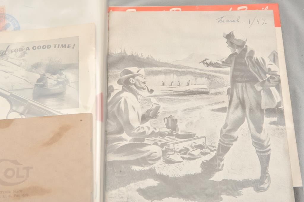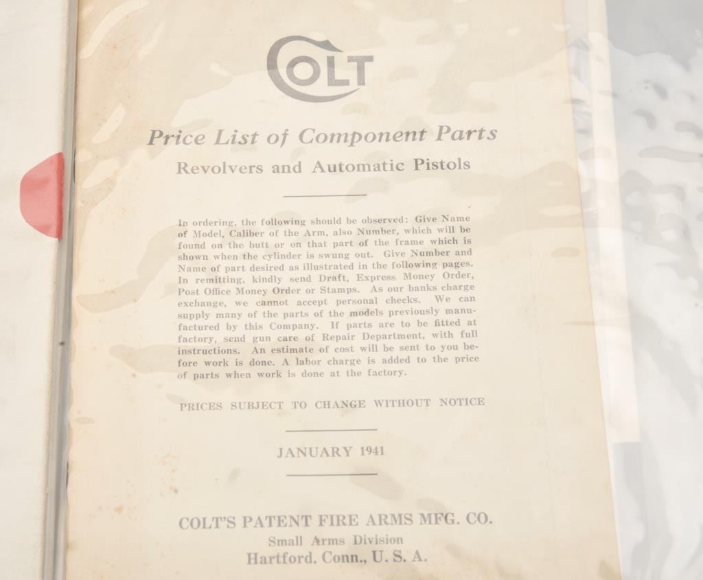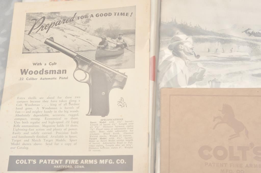 Lot of 4 original Colt advertising pamphlets, ca. 1920’s to 1940’s and a Lefever Arms Co. price booklet, ca. 1933. Est.: $50-$75.