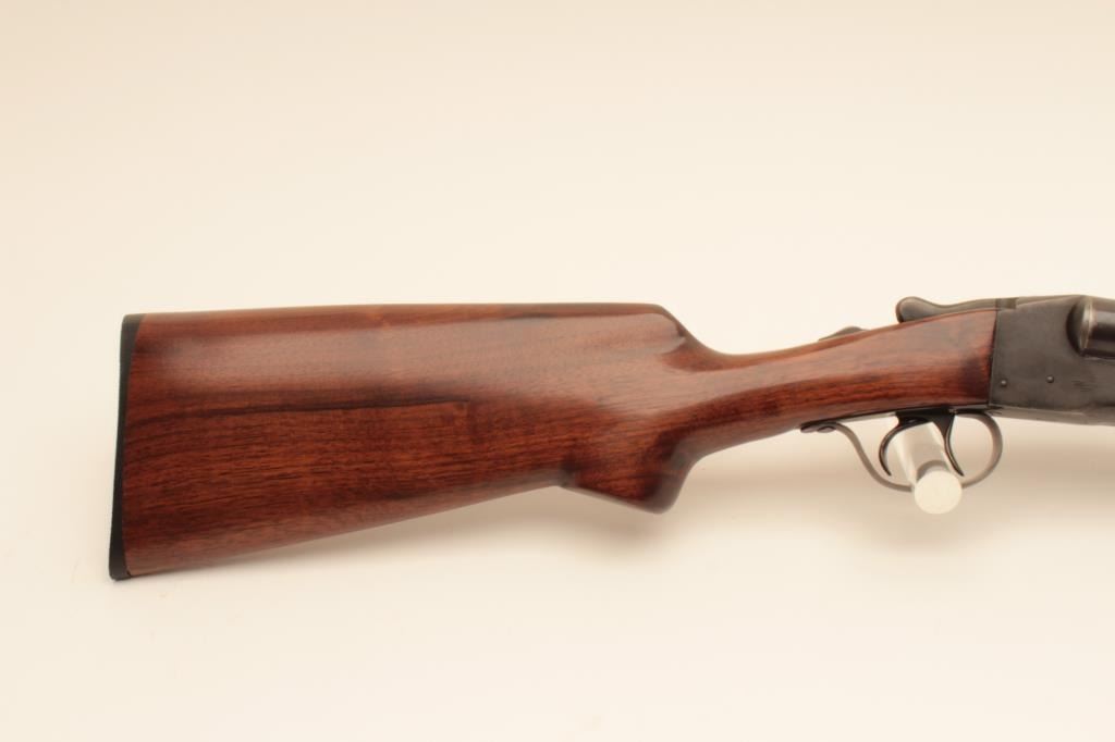 LeFever Arms Co. 20GA SxS Nitro Special 20GA shotgun with 28 ½” barrels, double triggers, and standard extractors, S/N 199199. Old refinish of which 80% remains. Slightly loose with good bores. Choked improved modified in the right and full in the left. (C&R) Est.: $175-$350