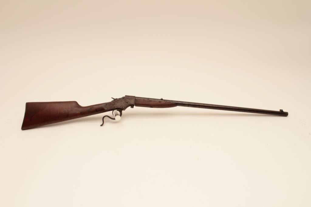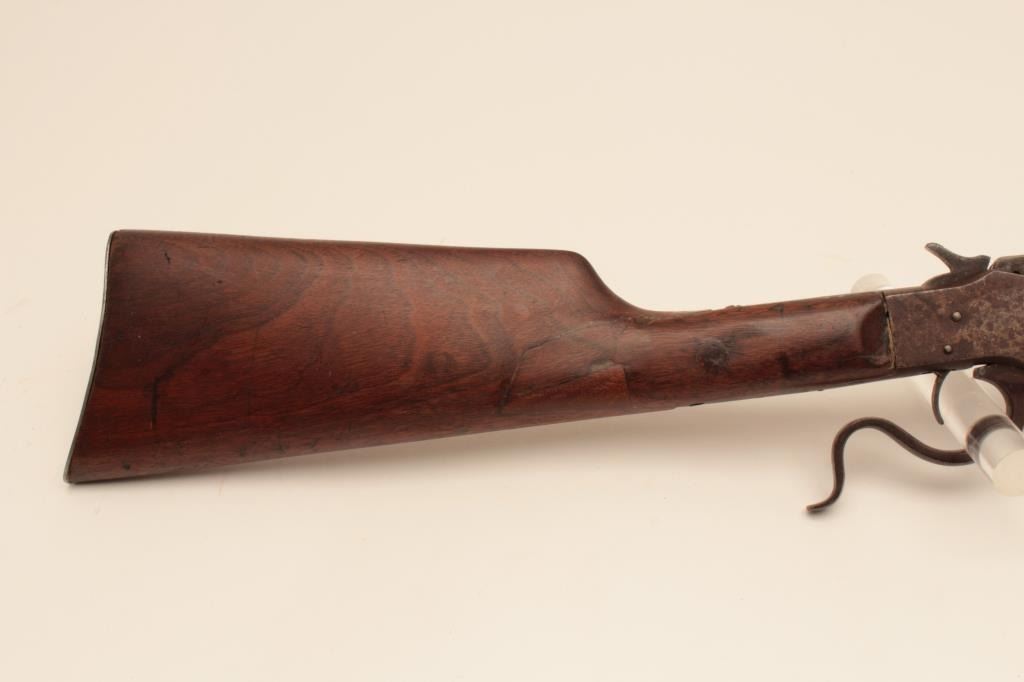 Stevens favorite .22 caliber single shot falling block rifle #67 on tang. 23” barrel. Good bore. Fair overall. (C&R) Est.: $100-$200