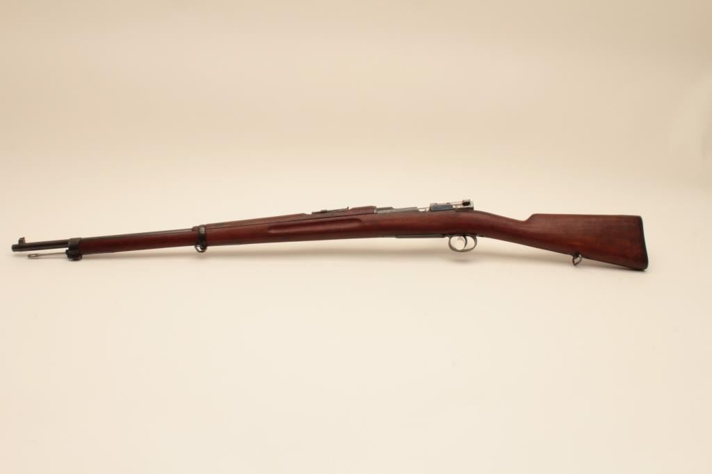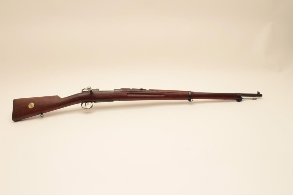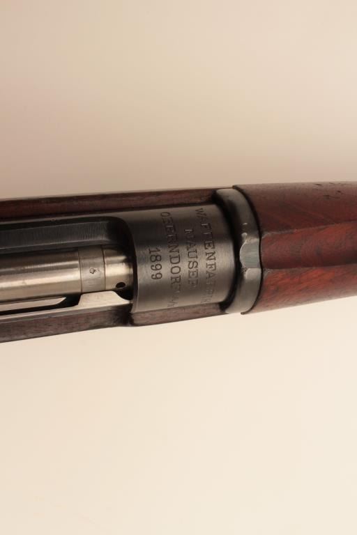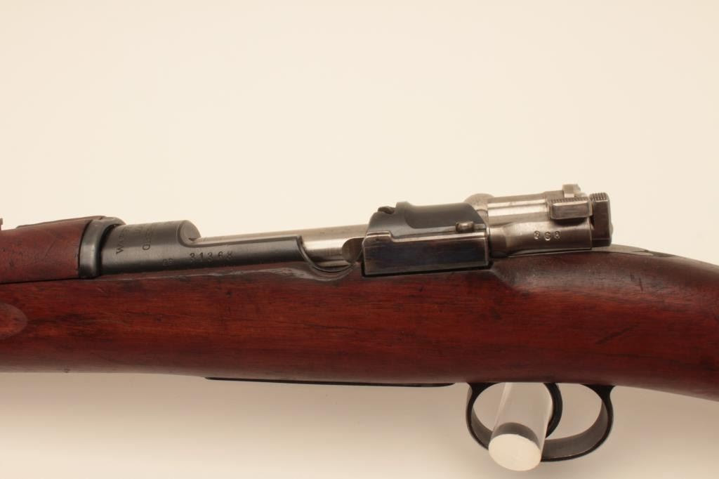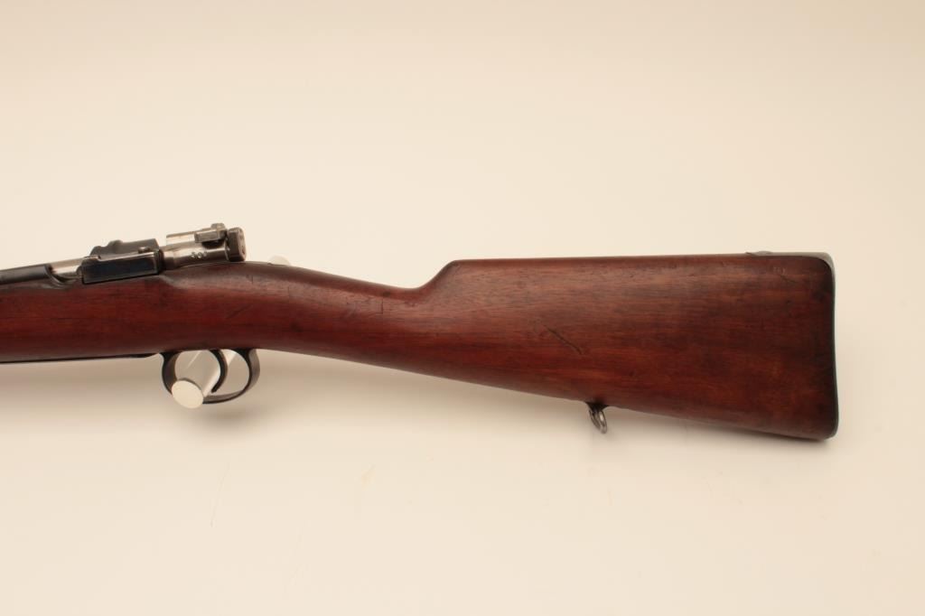 Model 1896 Swedish Mauser bolt action rifle, 6.5 x 55mm caliber, 27” barrel, blued finish, wood stock, import marked, S/N 31368, visible numbers match; overall very good to near fine condition with very good + bore,crisp action, sharp markings and overall very good wood stock. (C&R). Est.: $150-$300.