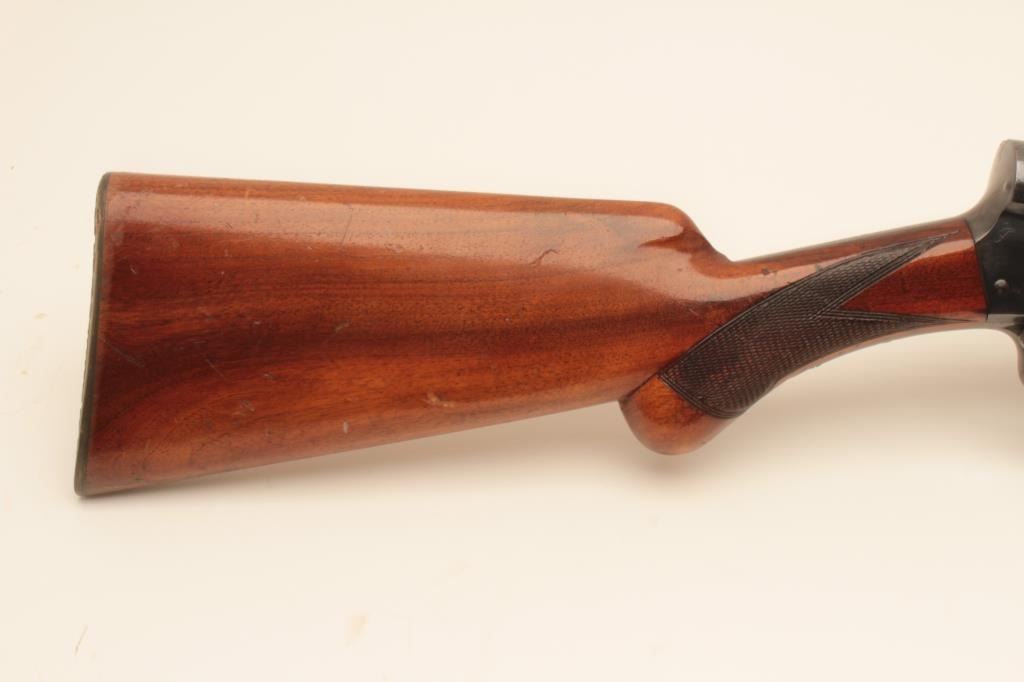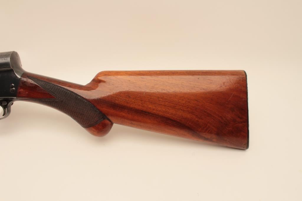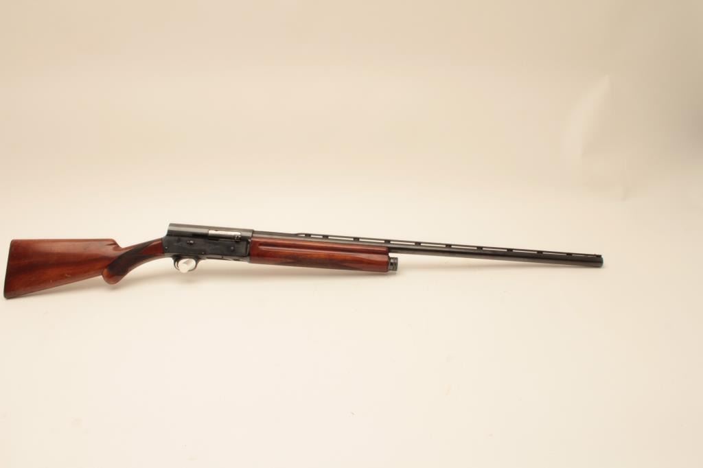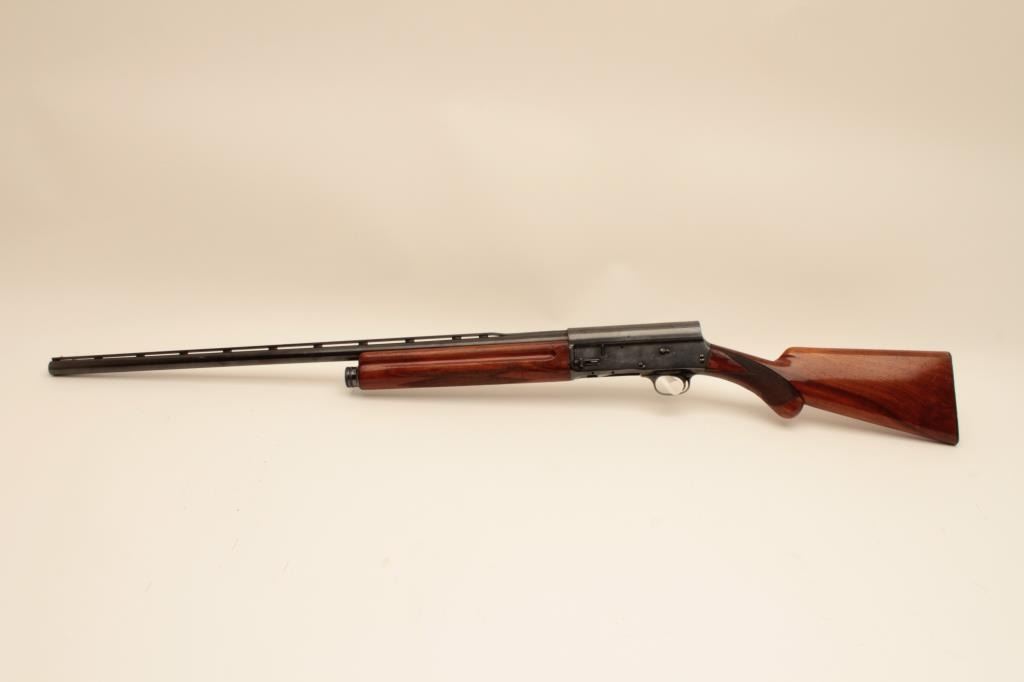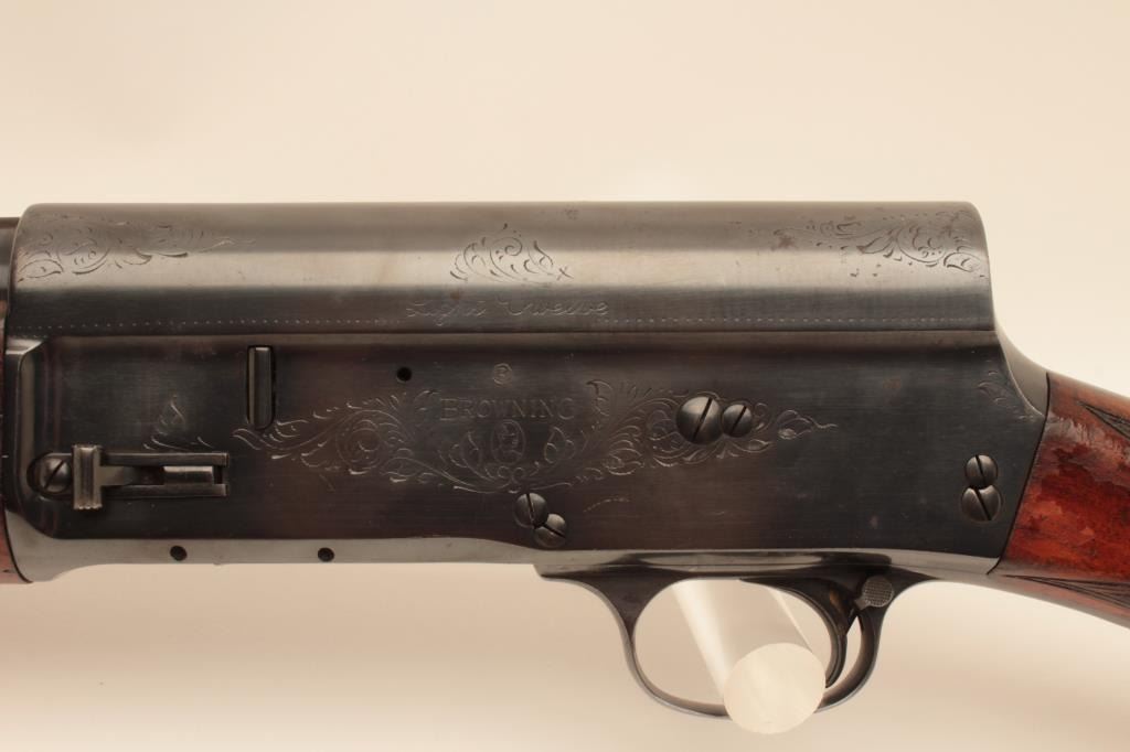 Belgium Browning Auto 5 Light Twelve shotgun with Prince William style long and rounded pistol grip, S/N L51289 with 30” barrel and old style vent rib choked full. Good quality old refinish of which 80%-90% remains. Goodaction and good interior. The stock is factory dimensions with early butt plate. (C&R) Est.: $250-$500