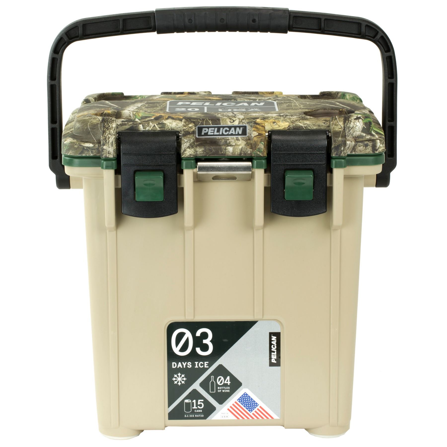 Pelican, Elite Cooler, Realtree Edge Camo/Tan, 20 Quarts, Molded-In Tie Downs, Integrated Cup Holders