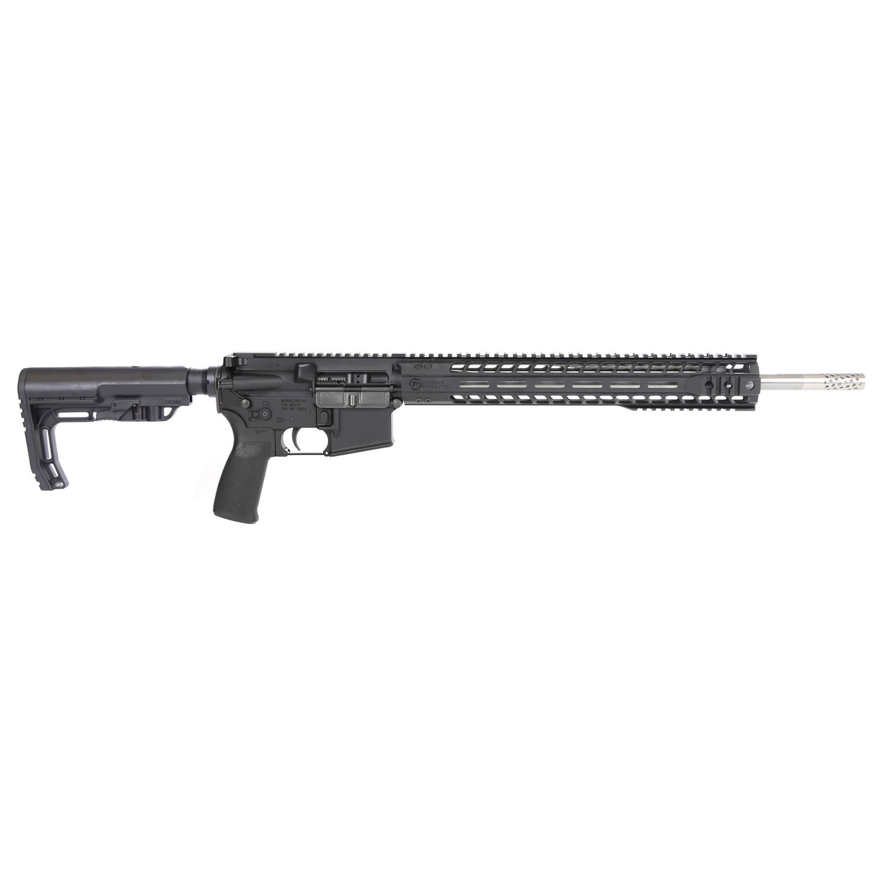 Radical Firearms, Forged Milspec Rifle, Semi-automatic, 224 Valkyrie, 18" Stainless Steel Match Grade Barrel, 1:7 Twist, Black Finish, MFT Minimalist Stock, 1 Magazine, 15Rd, Pepper Pot Muzzle Brake, 15" MHR (First-Gen MLOK Rail), MFT Pistol Grip