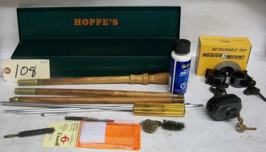 Soft gun case, Hoppers cleaning kit, trigger lock with key with, weaver scope rings, sling swivels