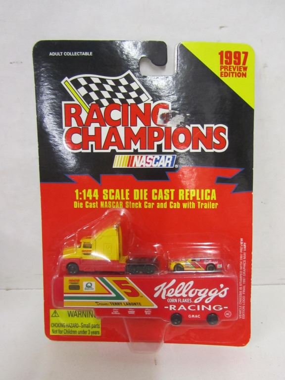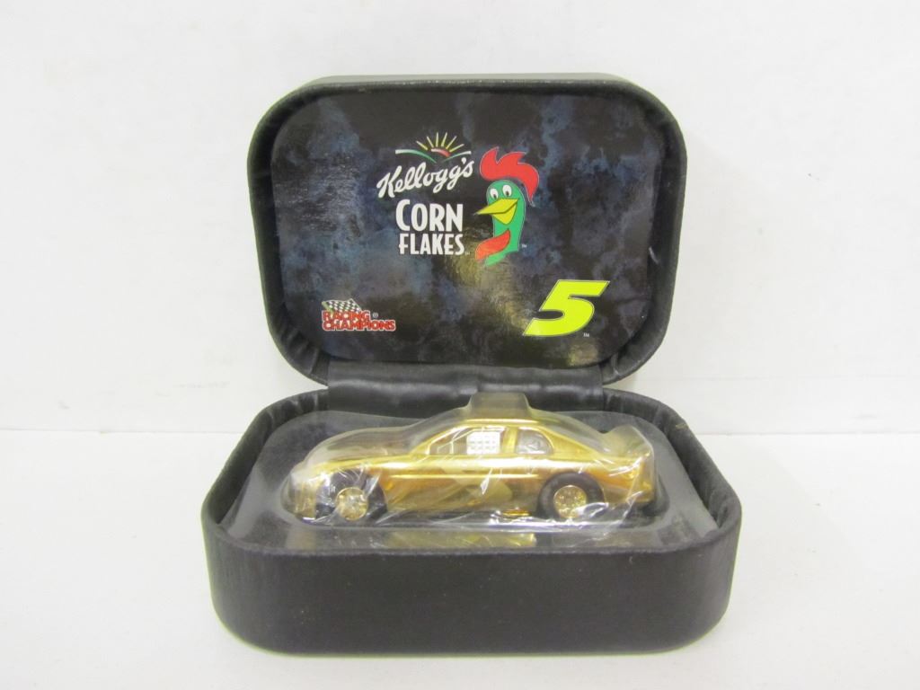 ONE TEAM CALIBER 1:64TH SCALE DIE CAST REPLICA OF TERRY LABONTE'S KELLOGS STOCK CAR IN UNOPENED PACKAGE, ONE NASCAR 50TH ANNIVERSARY KELLOGS CORN FLAKES 1:64TH SCALE GOLD REPLICA OF TERRY LABONTE'S STOCK CAR,