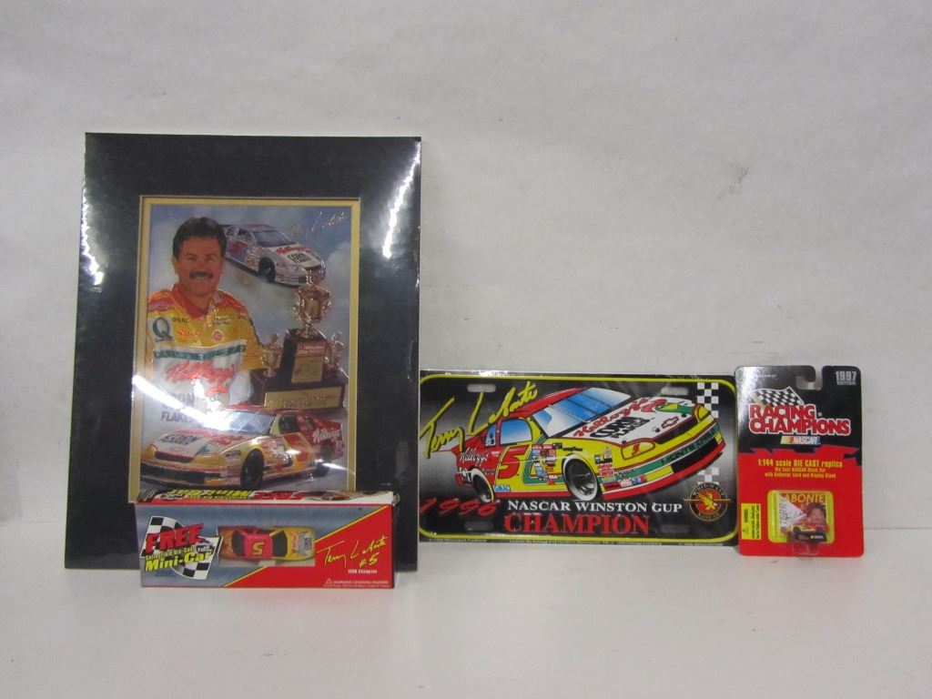 ONE PICTURE OF TERRY LABONTE WITH THE 1996 WINSTON CUP, ONE TERRY LABONTE 1996 WINSTON CUP CHAMPION LICENSE PLATE, ONE TERRY LABONTE 1:64TH SCALE DIE CAST STOCK CAR, ONE TERRY LABONTE 1:144TH SCALE DIE CAST REPLICA STOCK