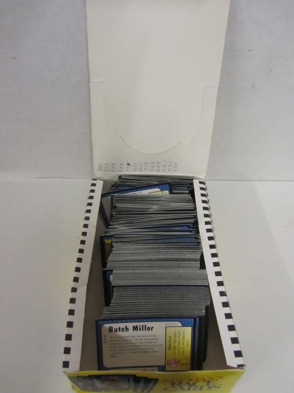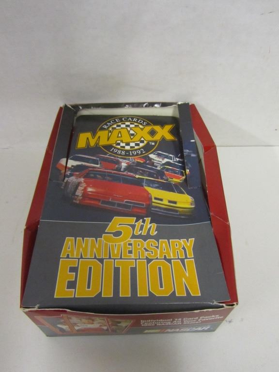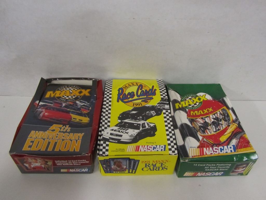 ONE BOX OF MAXX RACE CARDS 1988-1992 5TH ANNIVERSARY EDITION WITH 204 CARDS INSIDE (LID IS BORKEN AND TORN), ONE BOX OF MAXX RACE CARDS 1991 EDITION WITH 414 CARDS INSIDE, ONE BOX OF MAXX RACE CARDS 1993