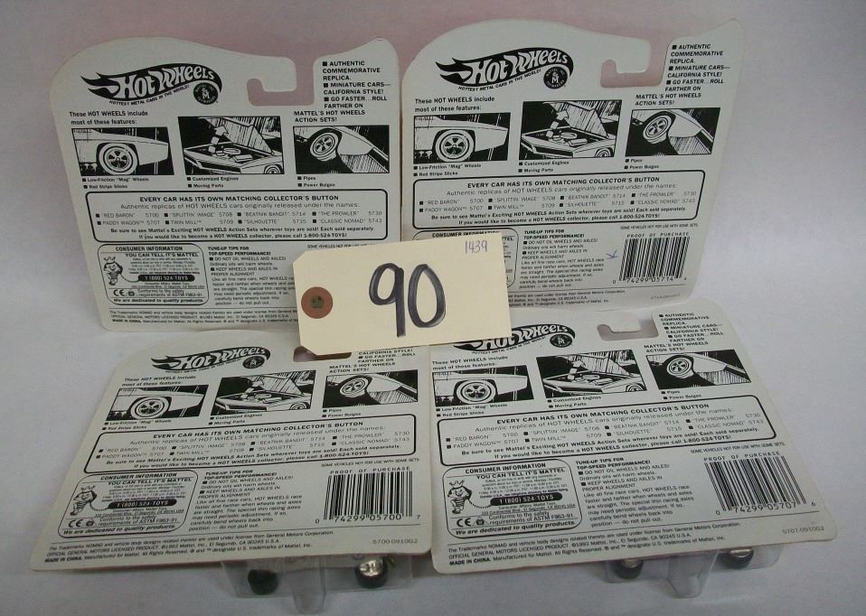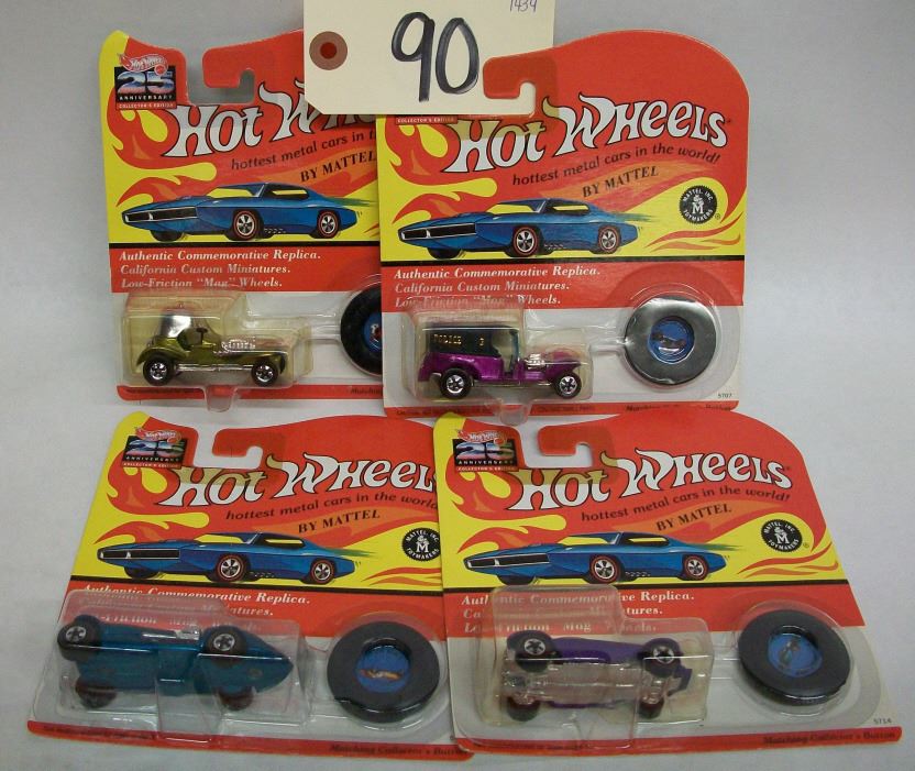 Hot Wheels 25th Anniversary Die Cast Cars- Series K (1993) (2 of 2) 1:64 size, in packages Set of 4 Beatnik Bandit (5714) Purple, with Matching Paddy Wagon (5705) Magenta, with Matching Collector's Button