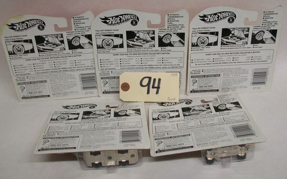 Hot Wheels Vintage Series A (1993) 1:64 size, in packages Set of 5 Mustang (10496) Blue, with Collector's Button Mongoose (10783) Red, with Collector's Button