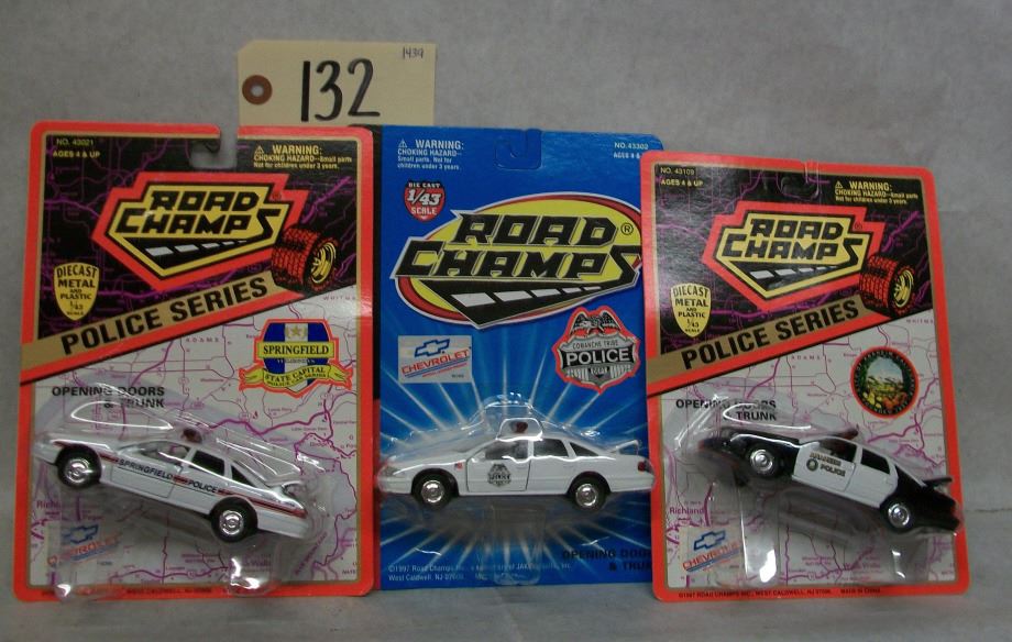 Lot 132 Road Champs Die Cast Cars (3) Police Series (1997)
