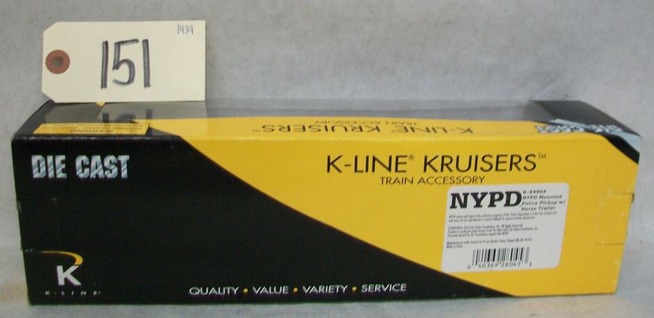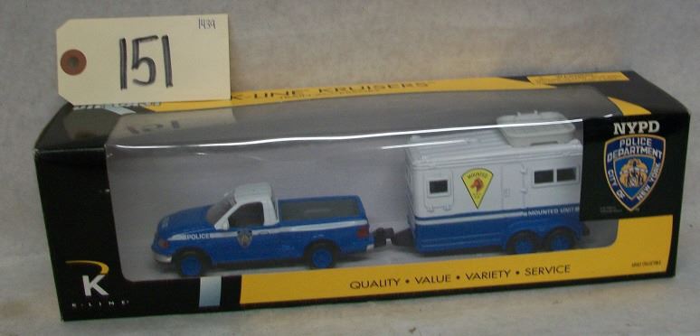 Lot 151 KLine Die Cast NYPD Mounted Police-Pick Up/Trailer