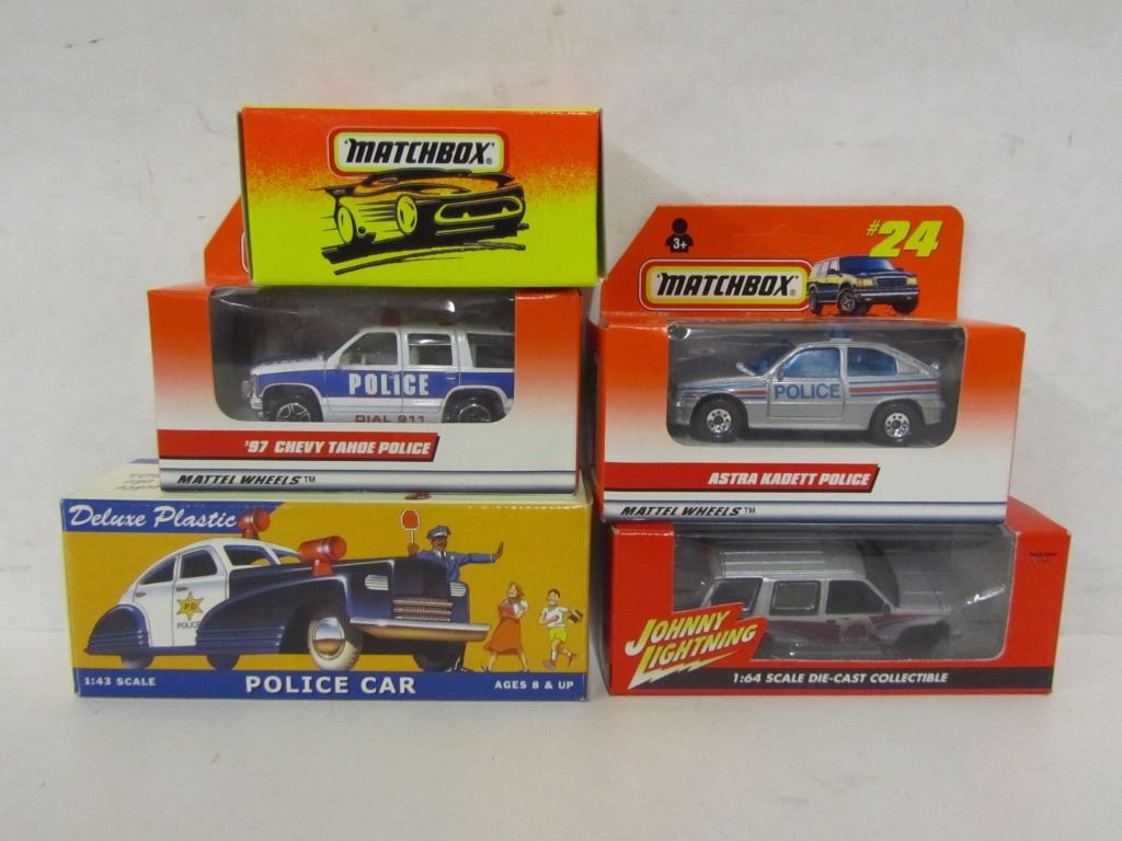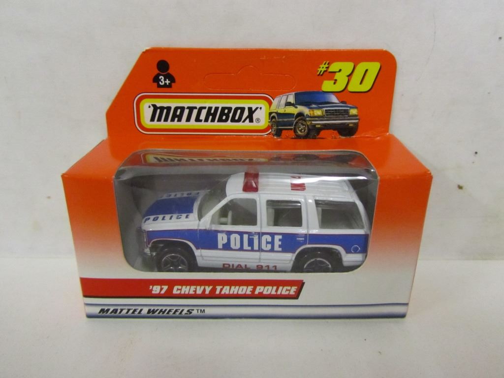 One Matchbox die cast Limited Edition Mission Chopper 46 of 75 in original box, One Dimestone Dreams Deluxe Plastics 1:43 Scale car in original box, One Matchbox Scale die cast 1997 Chevrolet Tahoe Police car in