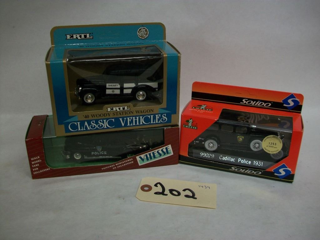 Lot 202 Three 1930-1940 Die Cast Police cars