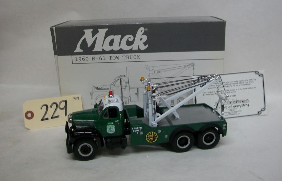 Lot 229 First Gear Mack 1960 NY Police Tow Truck Die Cast