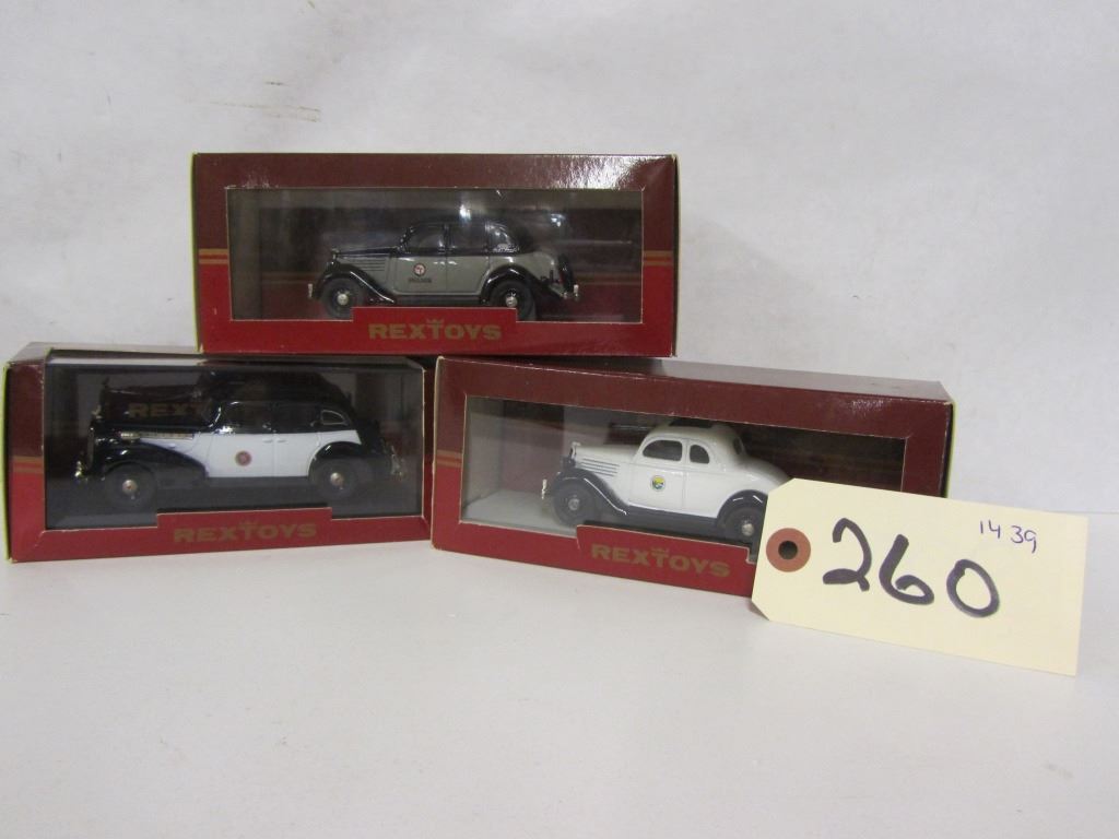 Rextoys Die Cast Car , 1) Ford 1935 Coupe, Police Car 2) Ford 1935 Touring Sedan Police Car 3) Packard Super 8 Formal Sedan
