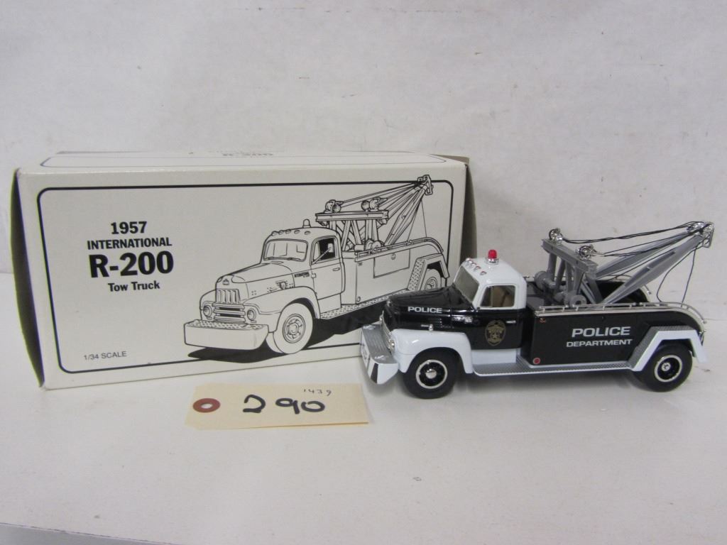 First Gear Diecast Truck set of 3 trucks, 1:34 scale, all with original packaging material 1) 1957 International R-200 Tow Truck Police Department