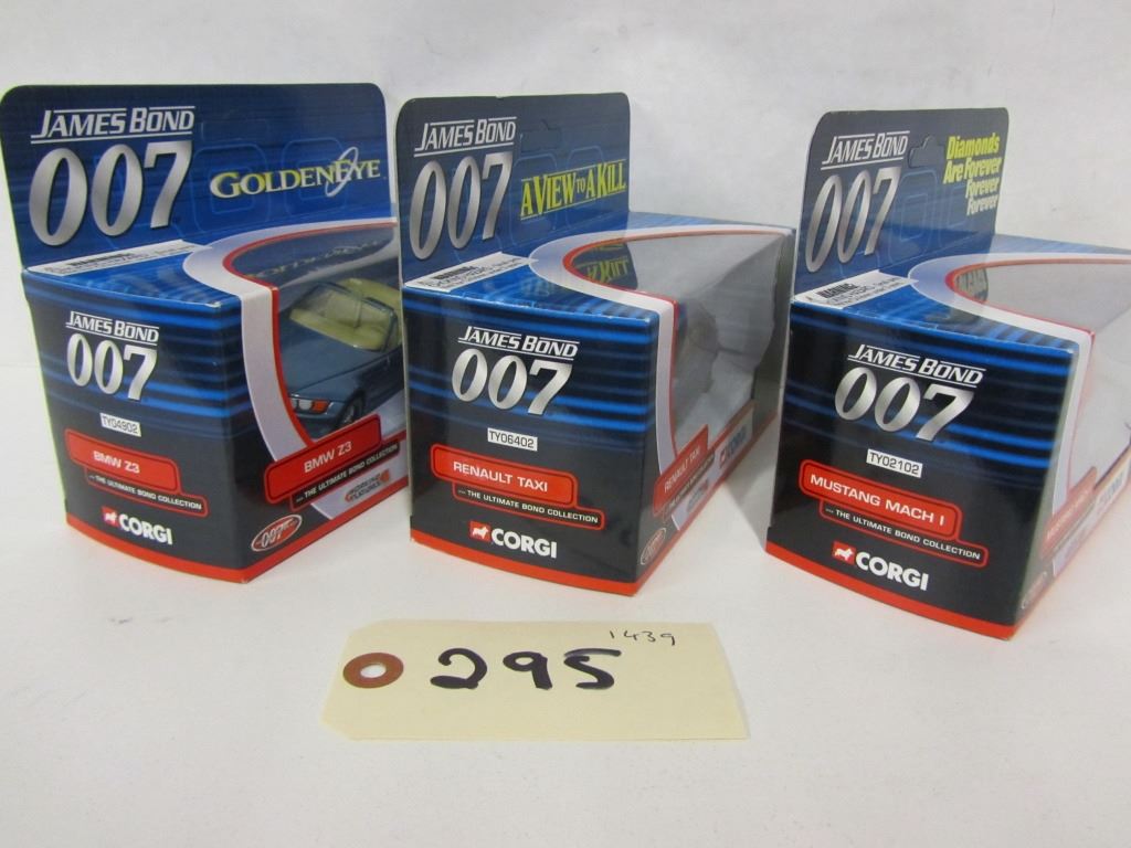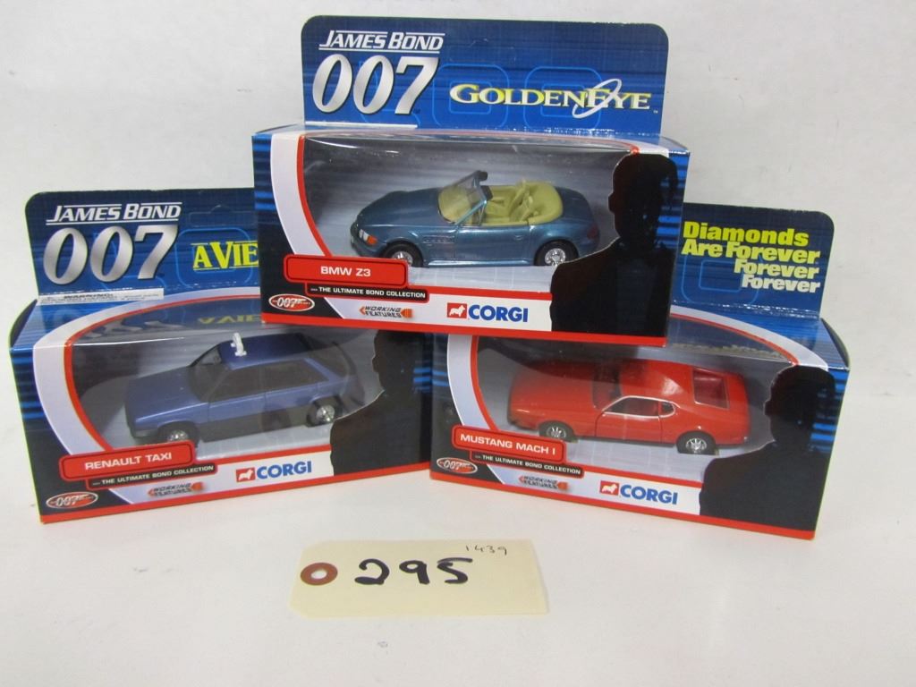 Corgi The Ultimate Bond Collection,die cast , with working features, 1) Mustang Mach 1, TY02102 2) Renault Taxi, TY06402 3) BMW Z3, TY04802