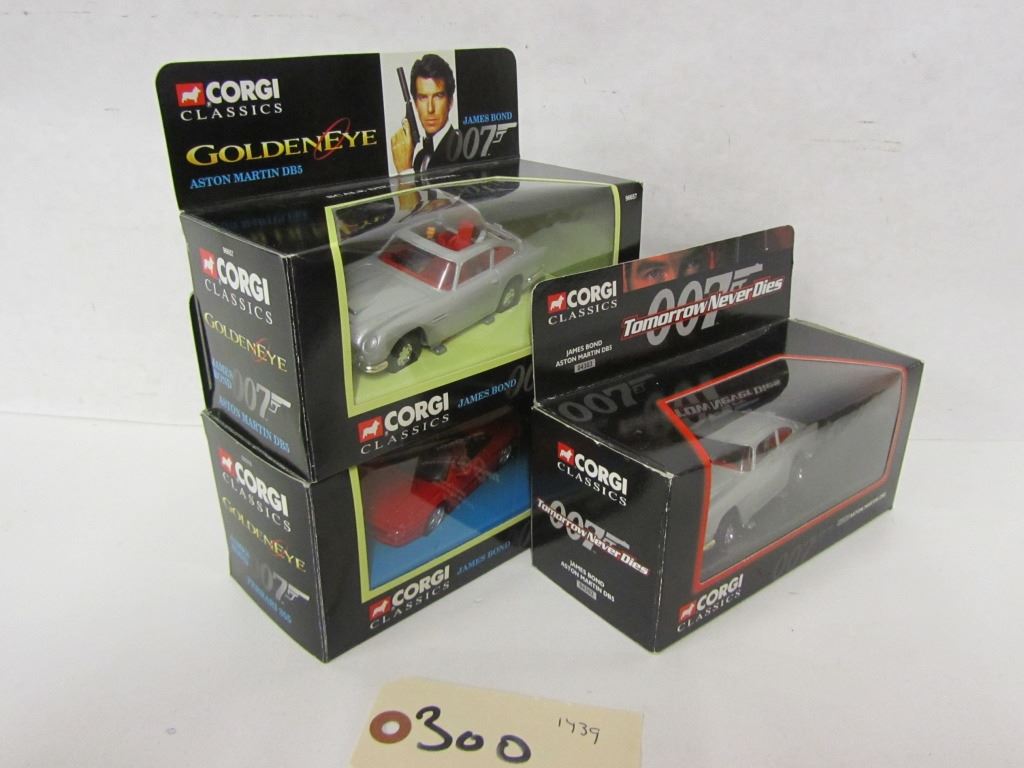 Corgi Classics Die Cast Car, James Bond 007 1) Aston Martin DB5, 04302 2) Ferrari 355, 9297 3) Aston Martin DB5, 96657