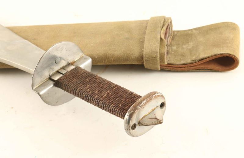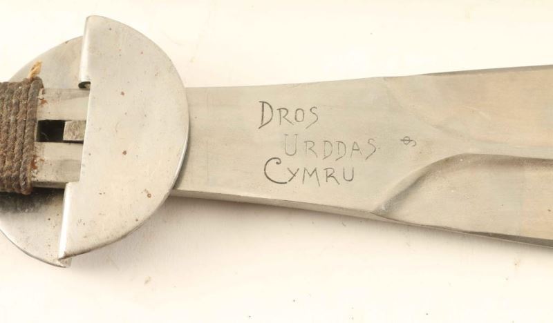 Unknown age with scabbard, Nevertheless, although this weapon was probably designed with more style than substance in mind, in order to appeal to the tastes of its purchaser, the 'Welsh knife' did look forward as well back in terms of the development of arms and armour. The 'Welsh knife' inspired the design of the Smatchet fighting knife of The Second World War by the renowned hand-to-hand combat expert and innovator, Lieutenant-Colonel William E. Fairbairn. From The John F Sukey Collection