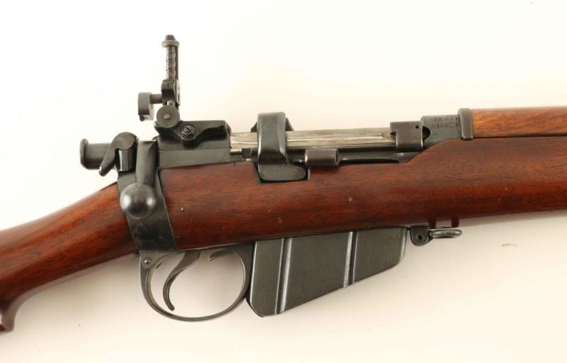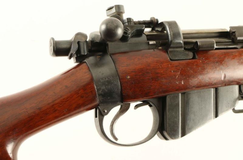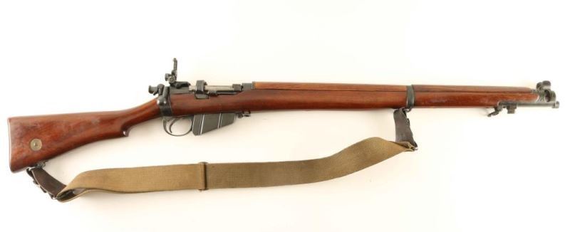 SN: 411251 English made magazine-fed bolt action military pattern sporting rifle chambered in .303 British. Regulated by Fulton. Features a blued finish, 25.2" barrel, raised patridge front sight, BSA/Parker adjustable sight with Parker variable aperture diopter on a BSA Tippins patent pivoting receiver mount, metal nosecap with bayonet lug, protective front sight ears & piling swivel, single barrel band, serrated trigger, detachable 10 round magazine with cut off on the right side of the receiver, manual safety on the bolt, tan canvas sling, charge loading bridge on the receiver, full length smooth walnut hand guard & forend and straight grip shoulder stock with brass disc & brass trapdoor buttplate. The right side of the butt socket is marked 'B.S.A..Co' and the receiver ring is stamped "FOR/CORDITE/ONLY, " "REGULATED/BY FULTON" & "FF937." Serial numbers match on the receiver and bolt handle. Rifle exhibits approximately 90% of its blued finish showing light wear. Action is smooth, the bore is excellent and the wood stocks are fine. Condition is NRA Fine ***C&R Firearm*** From The John F Sukey Collection
