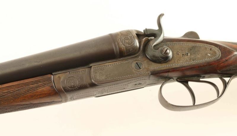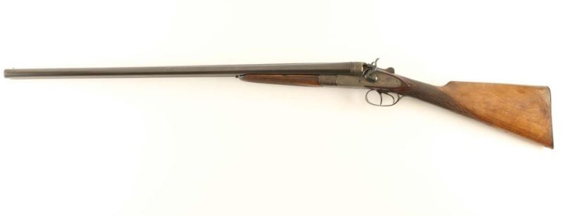 Italian made side-by-side double barrel sidelock shotgun chambered for 2 3/4" 16 gauge shells. Features light coverage engraving, 27.5" barrels with a raised & matted concave rib, brass bead front sight, extractor, exposed hammers, double triggers, serrated top lever, skip-line-checkered walnut splinter forend and straight grip shoulder stock with smooth metal buttplate. Shotgun is missing the firing pin assemblies and also the sling swivels that were once attached. The barrels display a nice even aged brown patina and the receiver & sidelocks show a mottled grey/brown patina with a small amount of bluing intact. The action is tight & mechanically sound, the barrels shows pitting at the end of the chambers/beginning of the bore, and the wood stocks are the wood stocks are good with worn checkering, small losses & dings. Condition is NRA Fair. ***C&R Firearm***