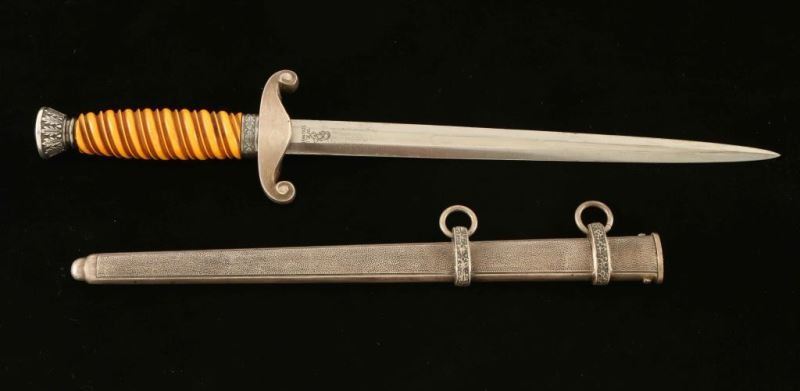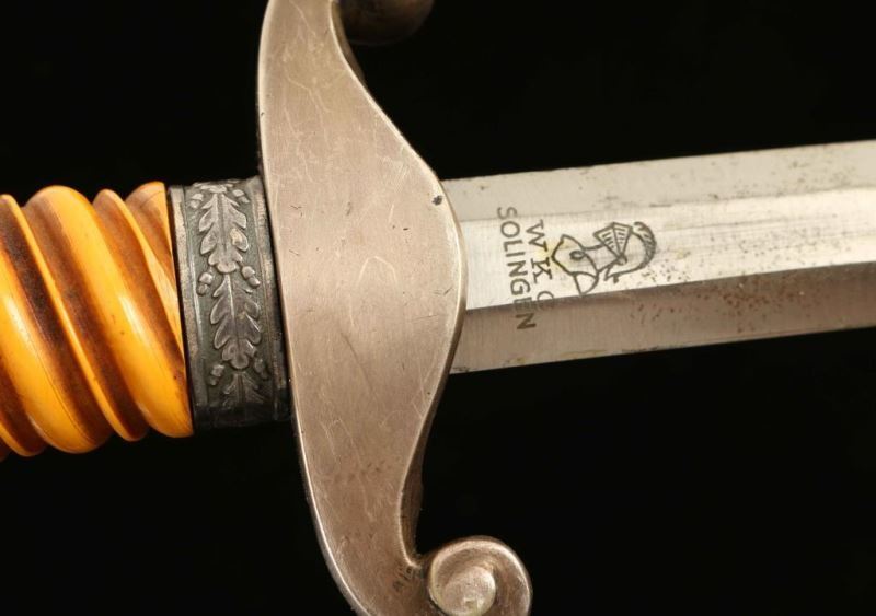 Nice burnt orange grip, great condition blade. Maker 'WKC'. Leather washer in place.