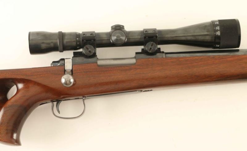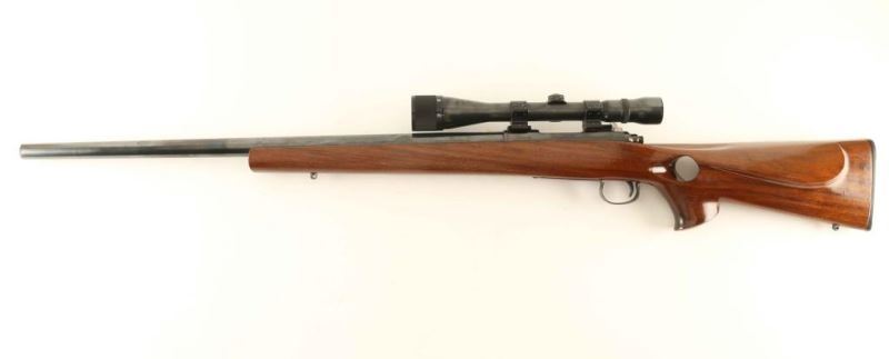 Custom target bolt action rifle in 224 Remington. Blued finish with a 26" heavy barrel. Comes with Weaver V12 scope 12x36 with adjustable objective. Right hand thumbhole with swivel sling studs. NRA Very Good ***Modern Firearm***