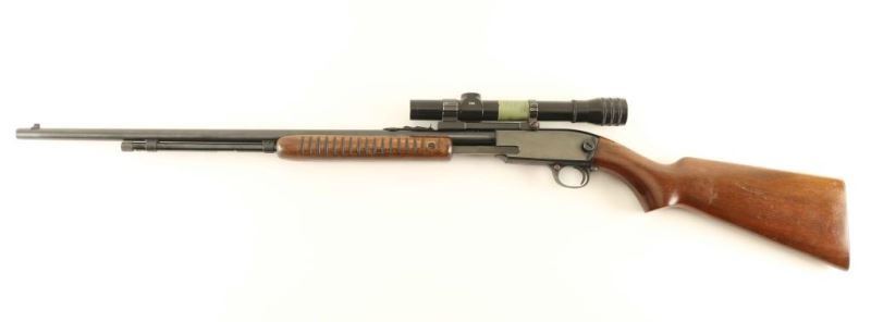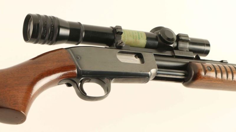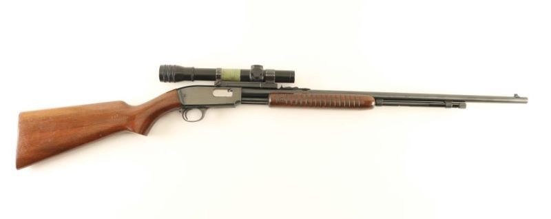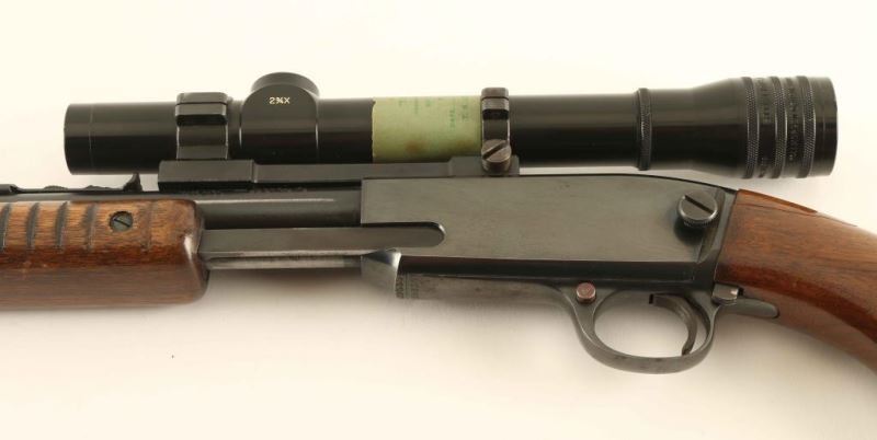 Pump action 22 with a blued finish and 24" barrel. 10 Rd under barrel tubular magazine. Bore is bright with strong rifling. Includes 2 3/4 power Smith rifle scope and mount with fine crosshair and dot reticle. NRA Very Good ***Modern Firearm***