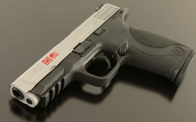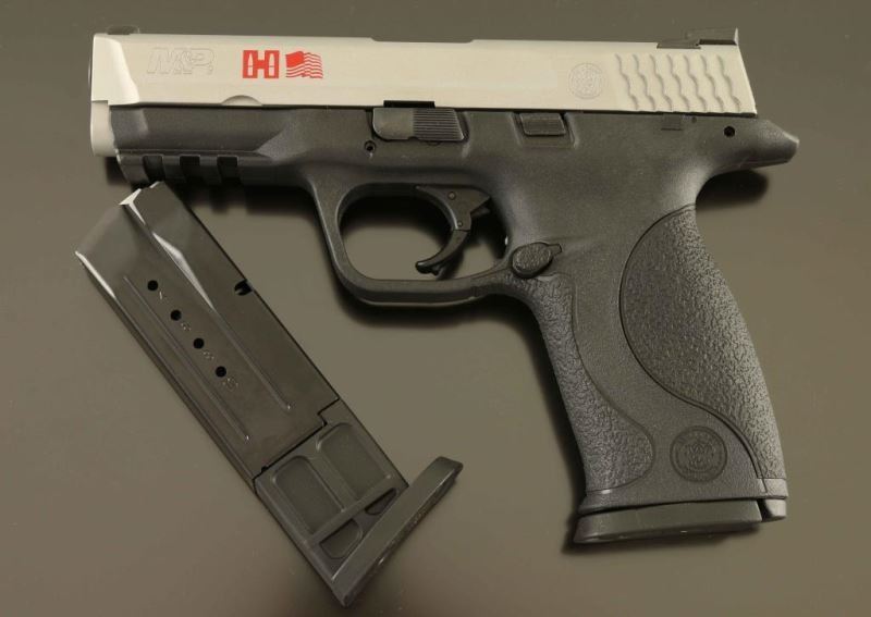 'Hornady Special Edition' Full-size striker fired semi-automatic pistol chambered in 9x19mm. Features a matte finished stainless steel slide with red Hornady insignia & American flag on the left side, 4.25" barrel with loaded chamber viewing port, dovetailed low-profile three-dot sights with drift adjustable rear sight, trigger safety, push button magazine release, factory 10 round magazine, and black polymer frame with integral accessory rail & interchangeable palm swell insert. Includes the original factory hard case with documents, lock, parchment paper, spare magazine and two additional palm swell inserts. Pistol exhibits some light slide wear on the barrel with no other wear observed. Action is smooth, the bore is excellent and the polymer is fine. Condition is NRA Excellent in case. ***Modern Firearm***