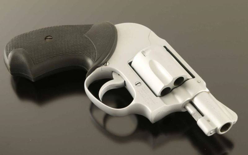 'Bodyguard' Small frame double action revolver chambered in 38 Special, manufactured circa 1980. Features an electroless nickel finish, pinned 2" barrel with sighting rib, serrated ramp front sight, square notched rear sight, non-shrouded ejector rod, fluted five-shot cylinder, serrated .240" trigger, shrouded hammer with serrated spur, three screw round butt alloy JC frame and two-piece Pachmyer Presentation/Compac checkered black rubber grips. Includes a factory two-piece blue cardboard box with reprinted label. The revolver retains nearly all of its nickel plated refinished showing very little wear. Action is smooth with very good lock up, the bore is excellent and the rubber grips are fine. Condition is NRA Excellent in box as refinished. ***Modern Firearm****