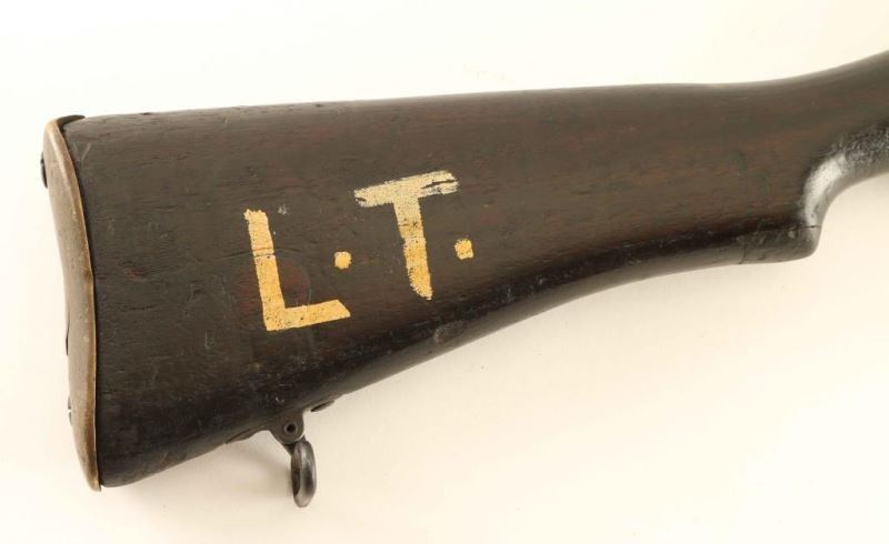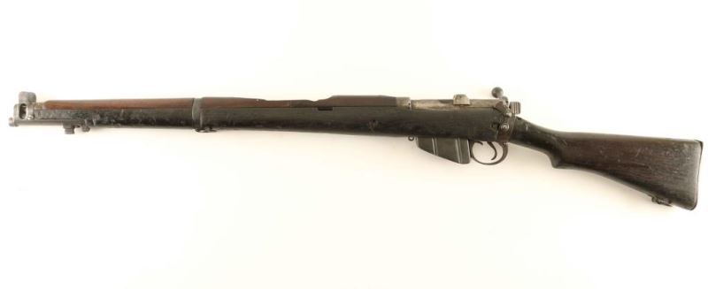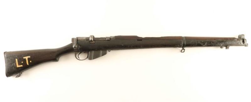 Indian military magazine fed bolt action Line Throwing rifle chambered in .303 British, manufactured circa 1948. Features a blued finish, 25.2" barrel, metal nosecap with bayonet lug & front sight ears, single barrel band, serrated trigger, detachable 10 round magazine, manual safety on the left side of the receiver, charge loading bridge on the receiver, smooth full-length wood hand guard & forend and straight grip shoulder stock with brass trapdoor buttplate. The right side of the butt socket is marked "[crown]/G.R.I./1948/No.1.Mk.3*" and the right side of the butt stock is marked "L.T." in white paint. Serial numbers match on the receiver, barrel, bolt handle and nose cap. Rifle exhibits very little remaining finish with the majority of the metal surfaces turned to patina with some pin prick pitting. Action is smooth, the bore is good and the wood stocks are near good. Condition is NRA Fair. ***C&R Firearm*** From The John F Sukey Collection