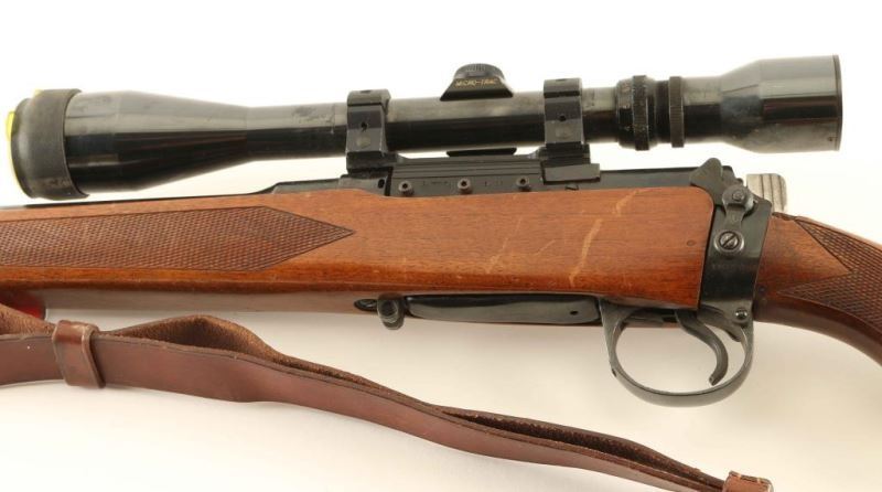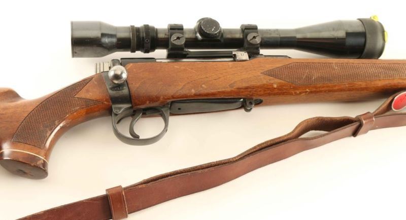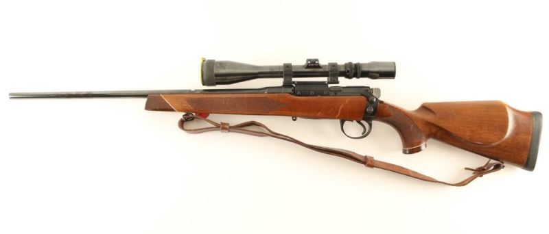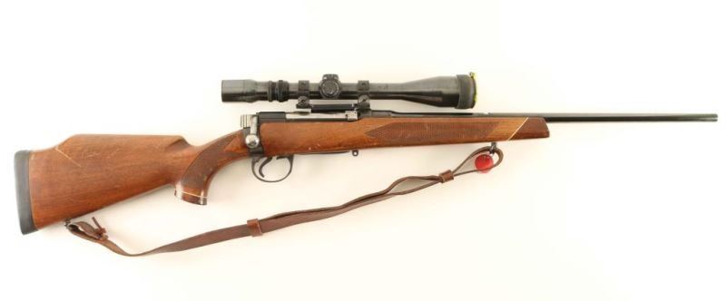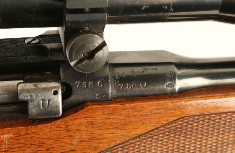 SN: R7580 British military bolt action service rifle converted to a sporting rifle by famous Birmingham retailer Parker Hale. Features a bright blued finish, 22" barrel, removed sights, Weaver V9-IIW 3-9x scope on a Parker Hale mount, removed charge loading bridge, detachable flush-fitting 5 round magazine, manual safety on the left side of the receiver, serrated trigger, brown leather sling, checkered walnut forend with forend cap and pistol grip shoulder stock with grip cap, right handed cheek rest & Decelerator recoil pad. The barrel is stamped "PARKER-HALE LTD. BIRMINGHAM, ENGLAND." and bears nitro proofs. The right side of the butt socket is marked "[crown]/G.R/ENFIELD/1918/SHT L E/III*," the left side of the butt socket is marked "ENGLAND" and the receiver ring is stamped with a broad arrow inside a "D." Serial numbers match on the receiver, barrel and bolt handle. Rifle exhibits the majority of it's blued refinish showing light wear and a very small amount of light surface rust. Action is smooth, the bore appears very good but dirty, optics are hazy and the wood stocks are good+ with several blemishes. Condition is NRA Good. ***C&R Firearm*** From The John F Sukey Collection