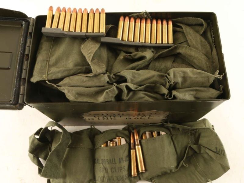 10Rd clips in 6 bandoliers in ammo can. Approx. 360+Rds total.