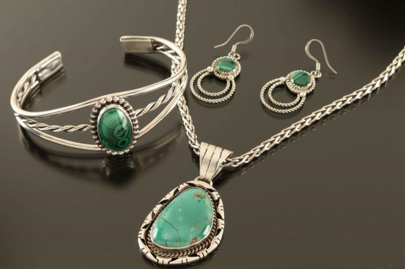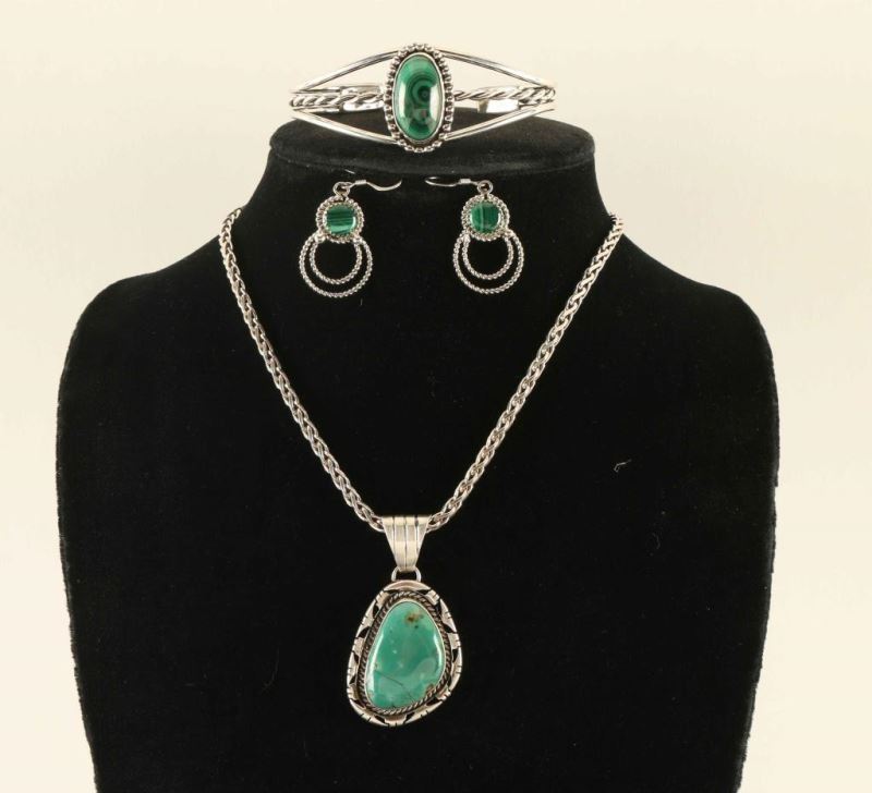 Lot 934a Navajo Sterling Silver & Malachite Set