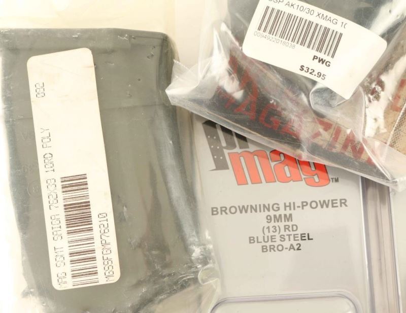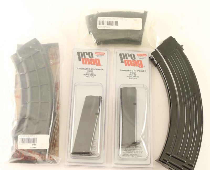 including (2) Browning Hi-Power 9mm mags, (2)AK-47 mags, Saiga 7.62x39 Mag.