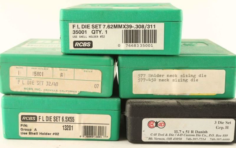 6.5X55, 32/40, 577 Snider neck sizing Die 577-450 neck sizing die, 11.7X51R Danish, 7.62mmx39-308-311 From The John F Sukey Collection
