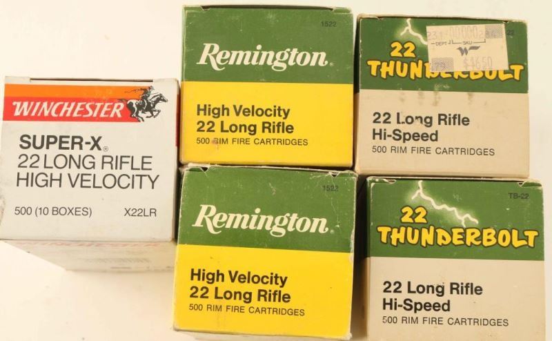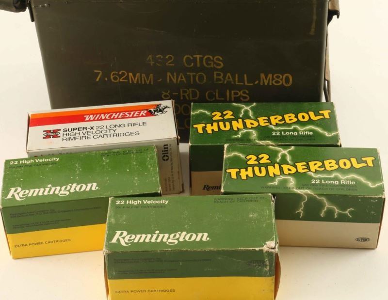 Includes 2 bricks of Remington High Velocity, 2 bricks of 22 Thunder High Speed, 1 brick Winchester Super X High Velocity, 1500 Rds total in ammo can.